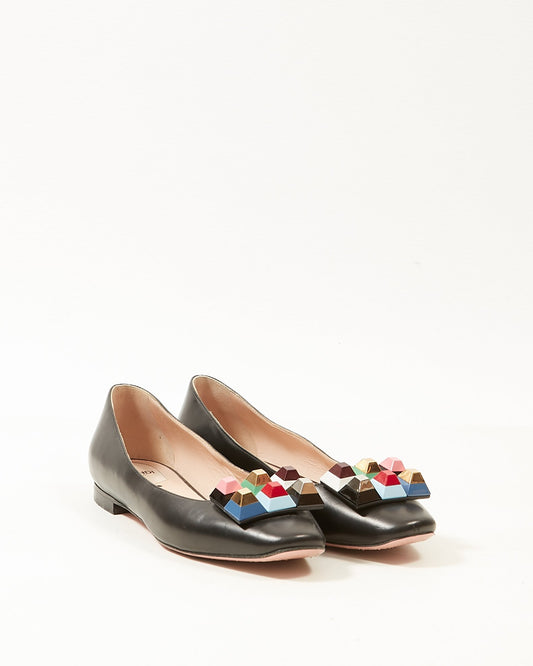 Black Leather Rainbow Stud Flats - 39