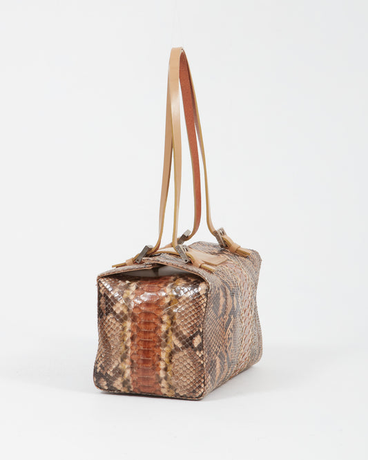 Brown Python Rectangular Shoulder Bag