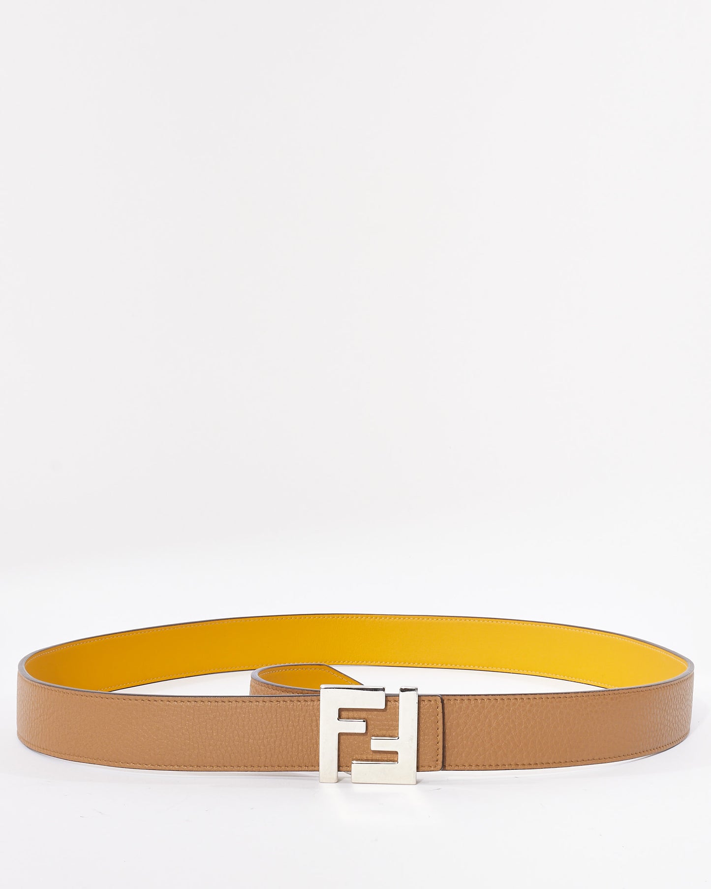 Explore Fendi's exquisite collection of accessories, featuring this certified pre-owned Brown/ Yellow Reversible Silver Logo Belt. Embodying timeless elegance and modern sustainability, each piece, including favorites like this, is authenticated by Retyche. Discover sustainable luxury — shop our current treasures or find inspiration for your next coveted find.