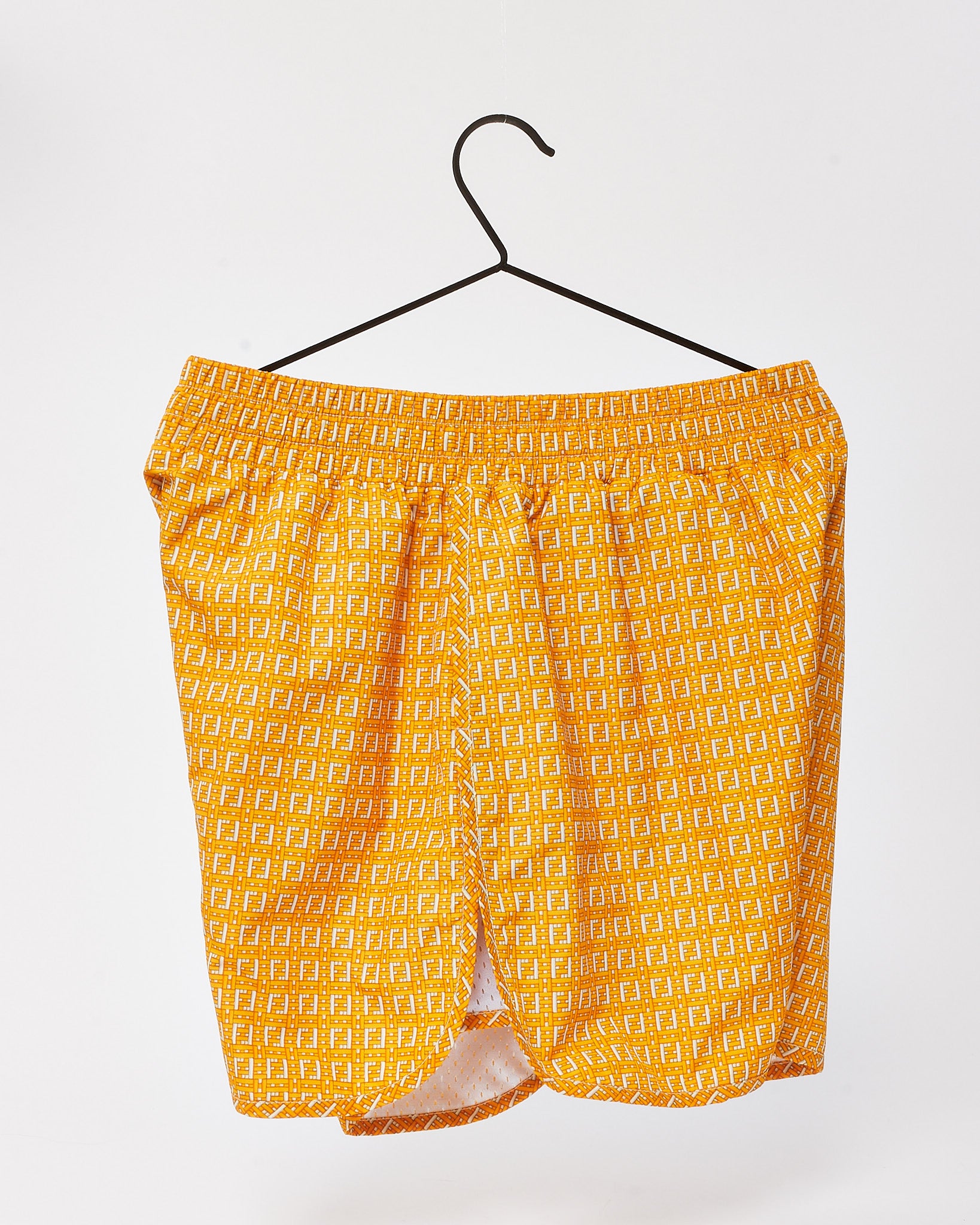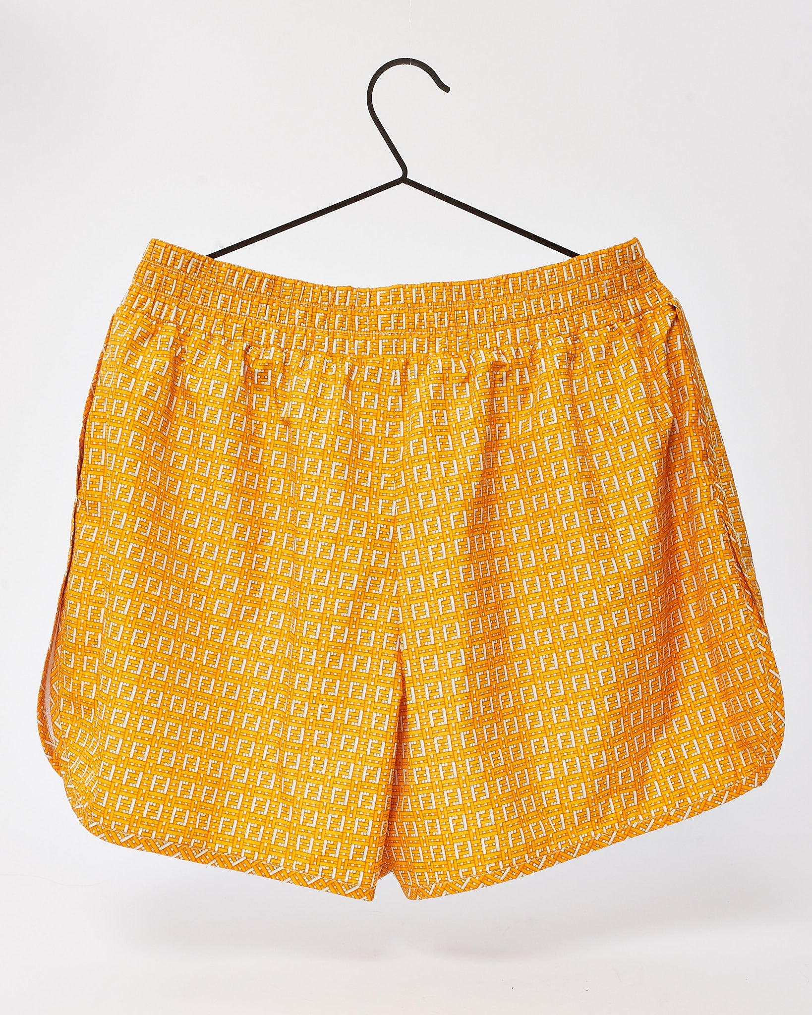 Orange Forever Fendi Woven FF Zucca Logo Print Nylon Shorts - L