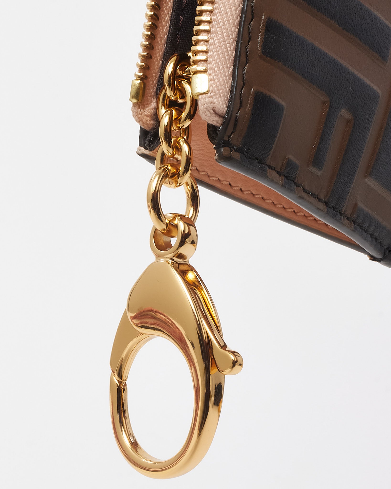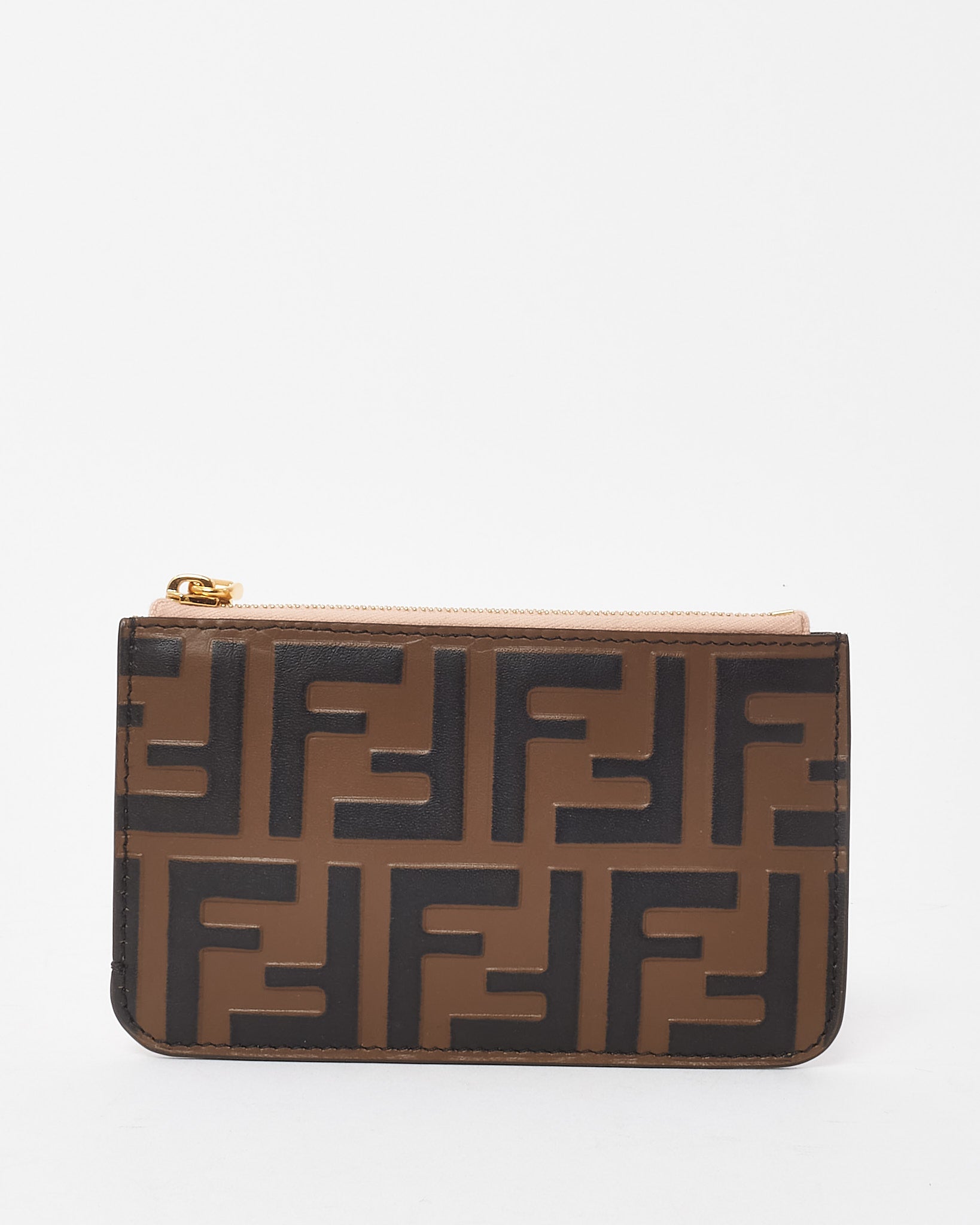 Add a touch of playful sophistication to your accessories lineup with this pre-loved authentic Fendi Pink Canvas with FF Black and Brown Embossed Leather Card Case Pouch. Crafted in a vibrant pink canvas, this compact piece is trimmed in smooth black leather and finished with the signature embossed FF logo in contrasting brown for a modern, graphic touch. The zip-top design opens to a slim interior, ideal for storing cards, coins, or folded bills, while the gold-tone hardware adds a refined edge. A perfect everyday essential, this pouch balances bold branding with Fendi’s iconic elegance.