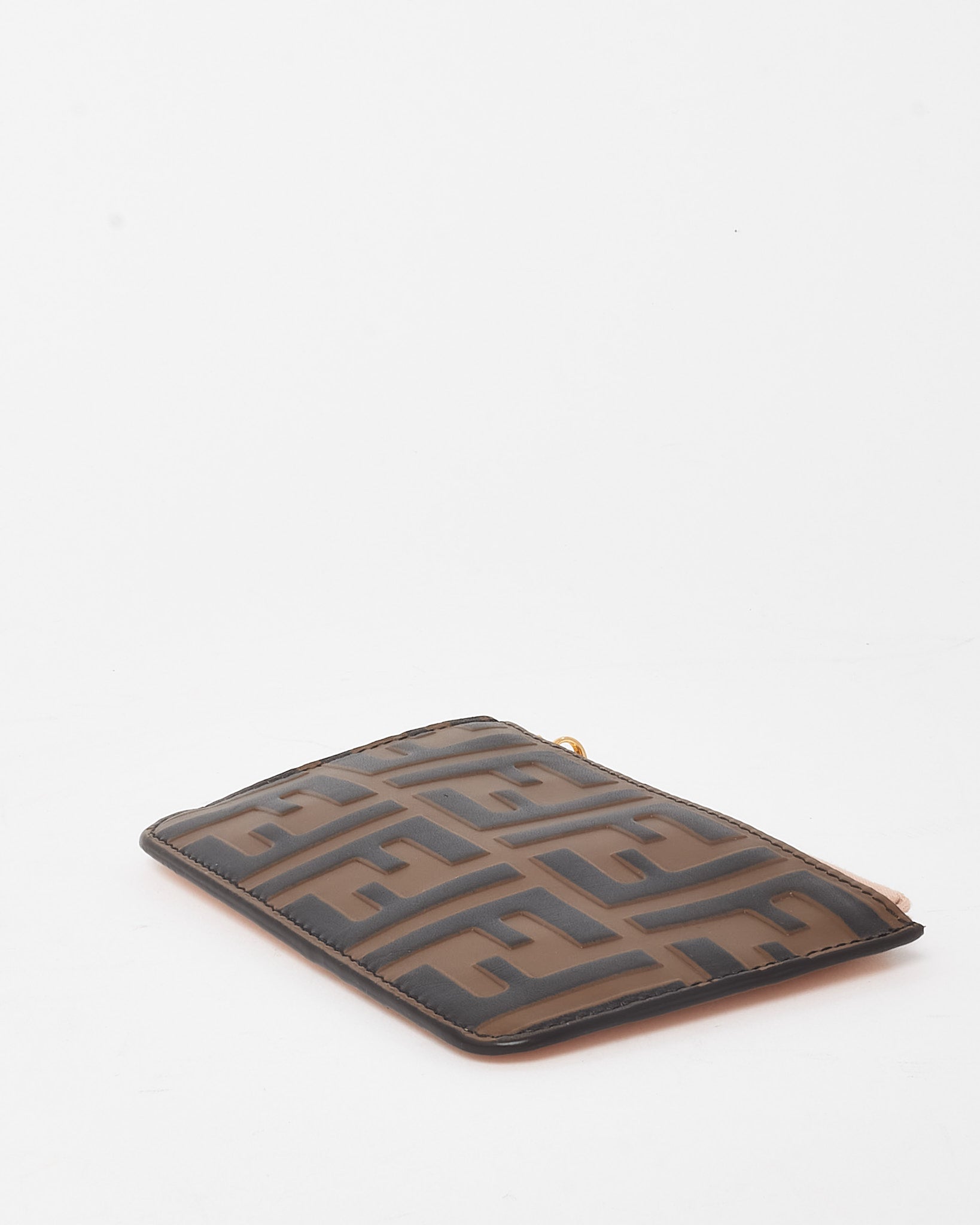 Pink Canvas with FF Black and Brown Embossed Leather Card Case Pouch