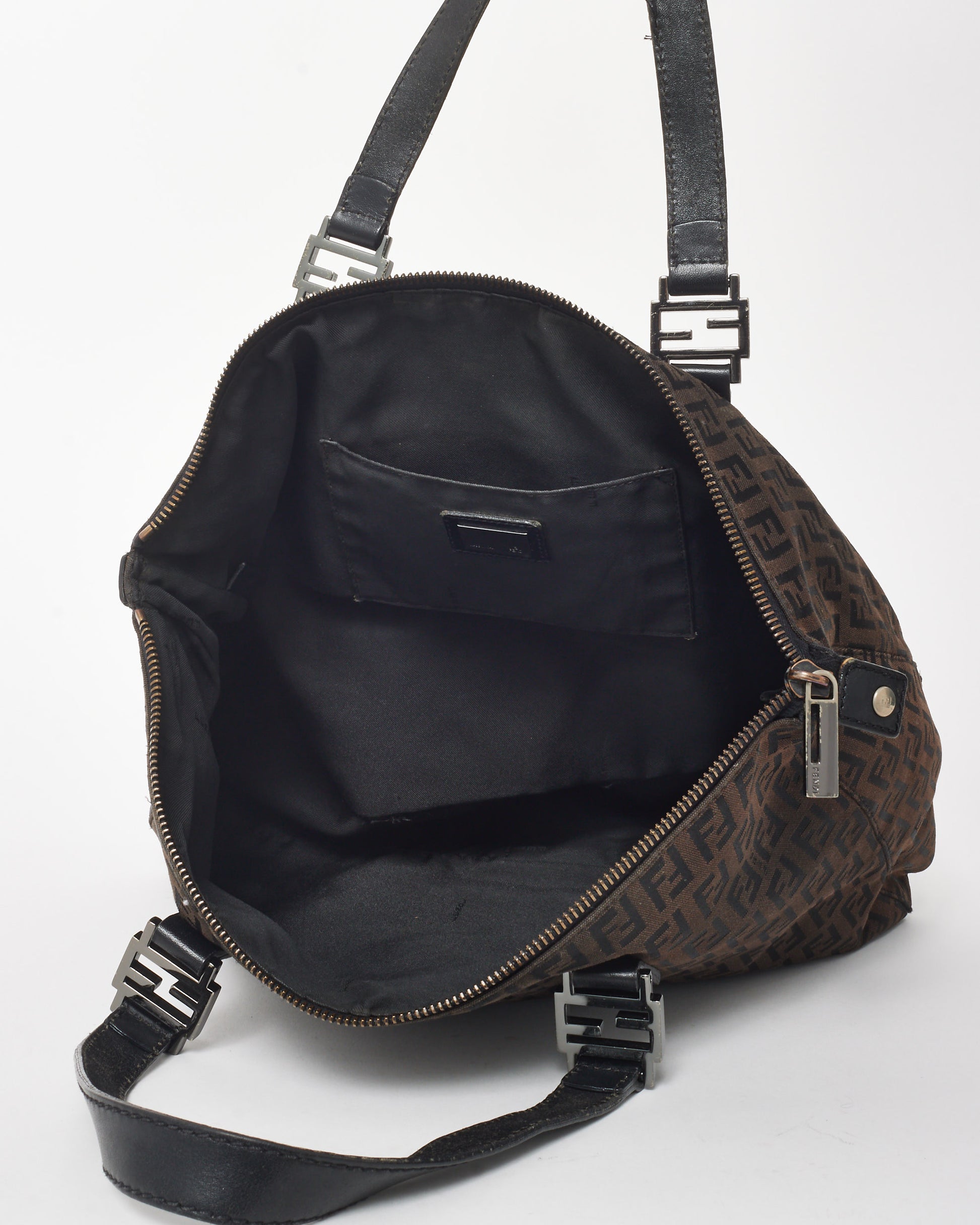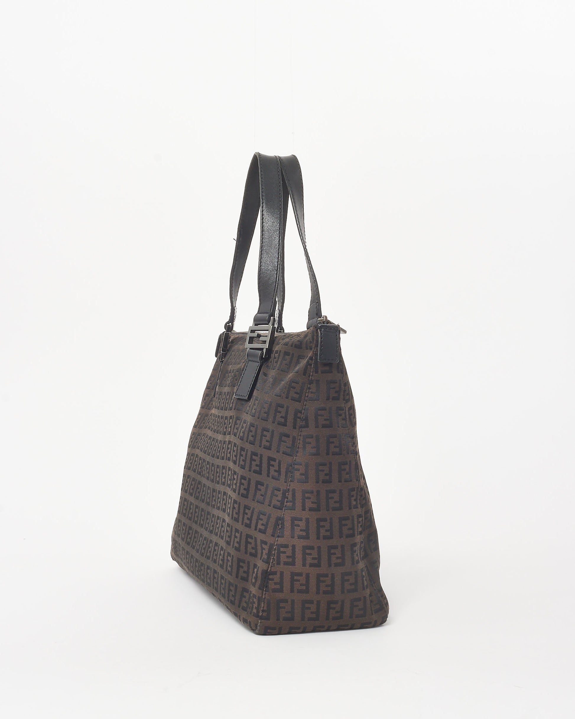 Elevate your everyday essentials with the timeless charm of this authentic pre-owned Fendi Vintage Brown and Black Zucchino Canvas Tote Bag. Featuring Fendi’s iconic Zucchino monogram pattern, this tote is a perfect blend of vintage allure and modern practicality, making it a must-have for the discerning fashion enthusiast.