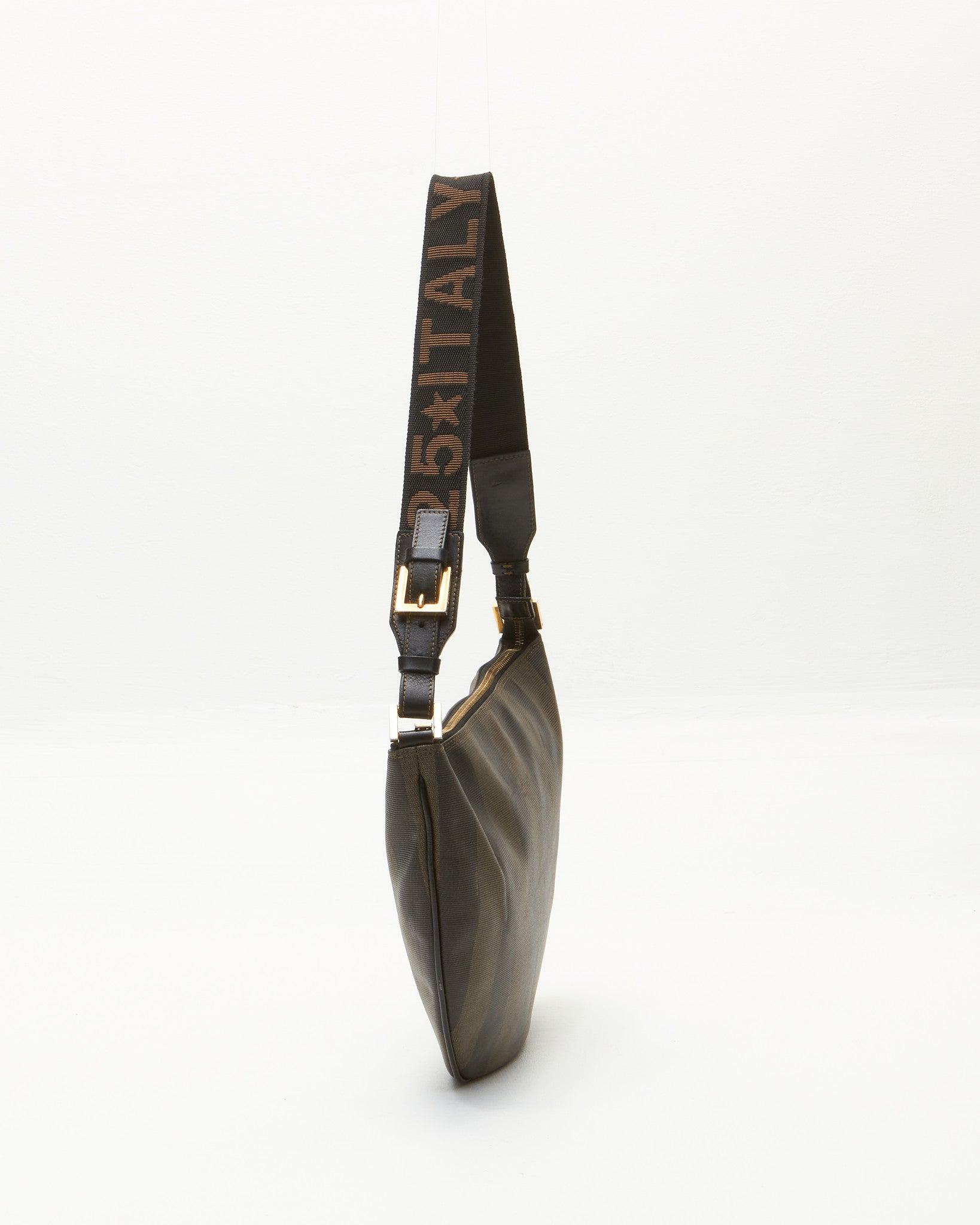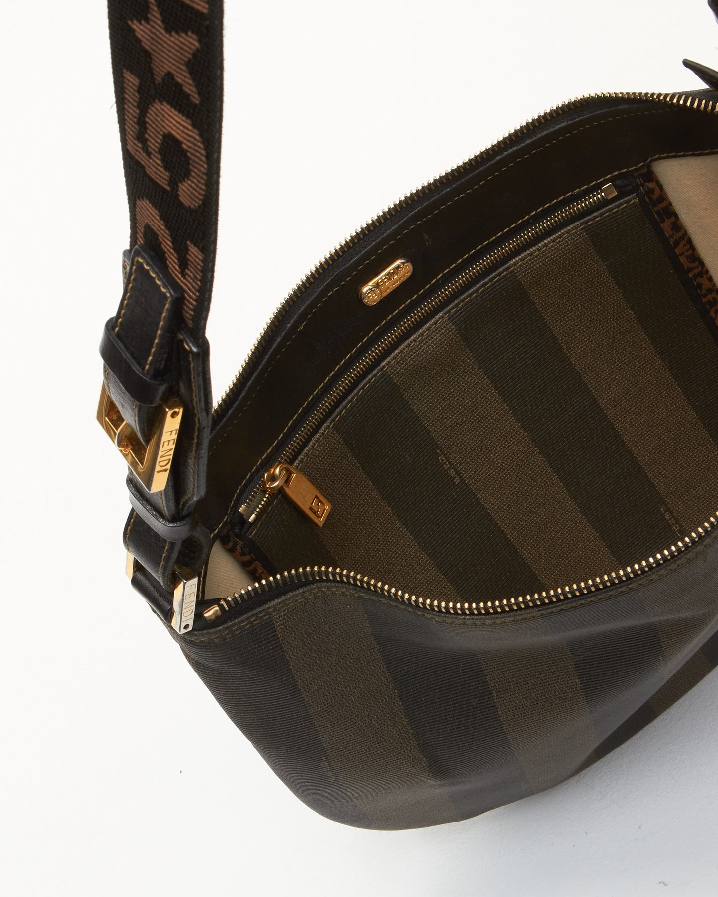 Vintage Brown Stripe Logo Strap Shoulder Bag