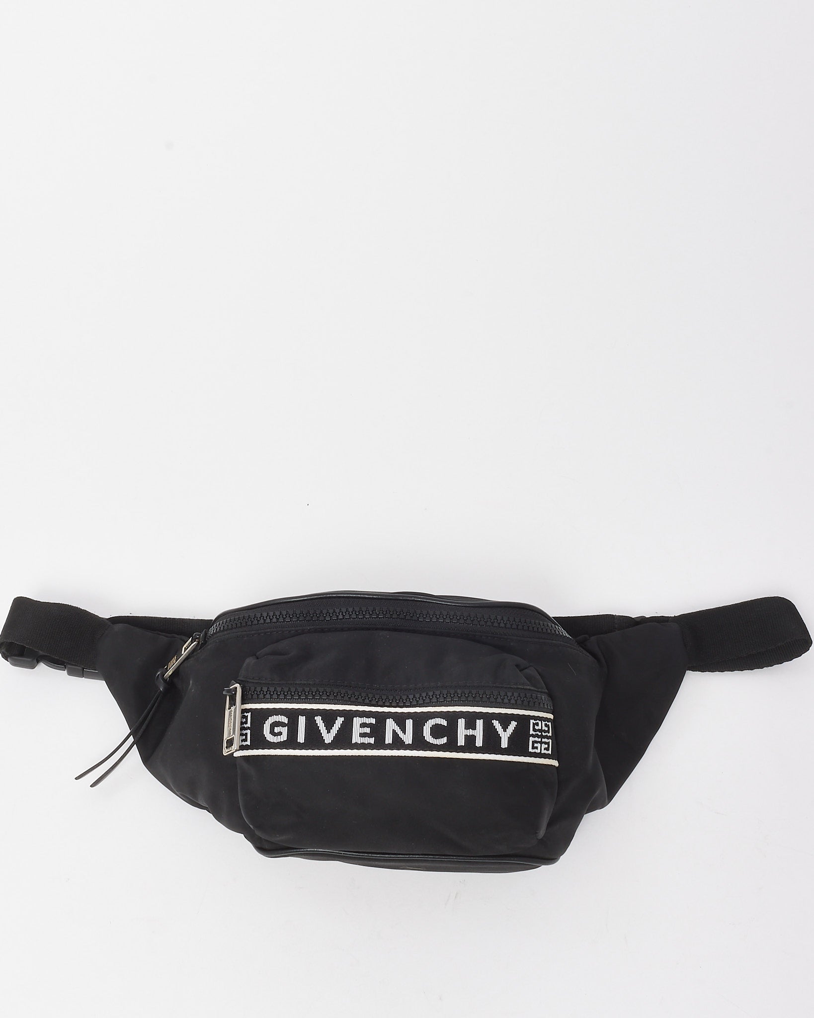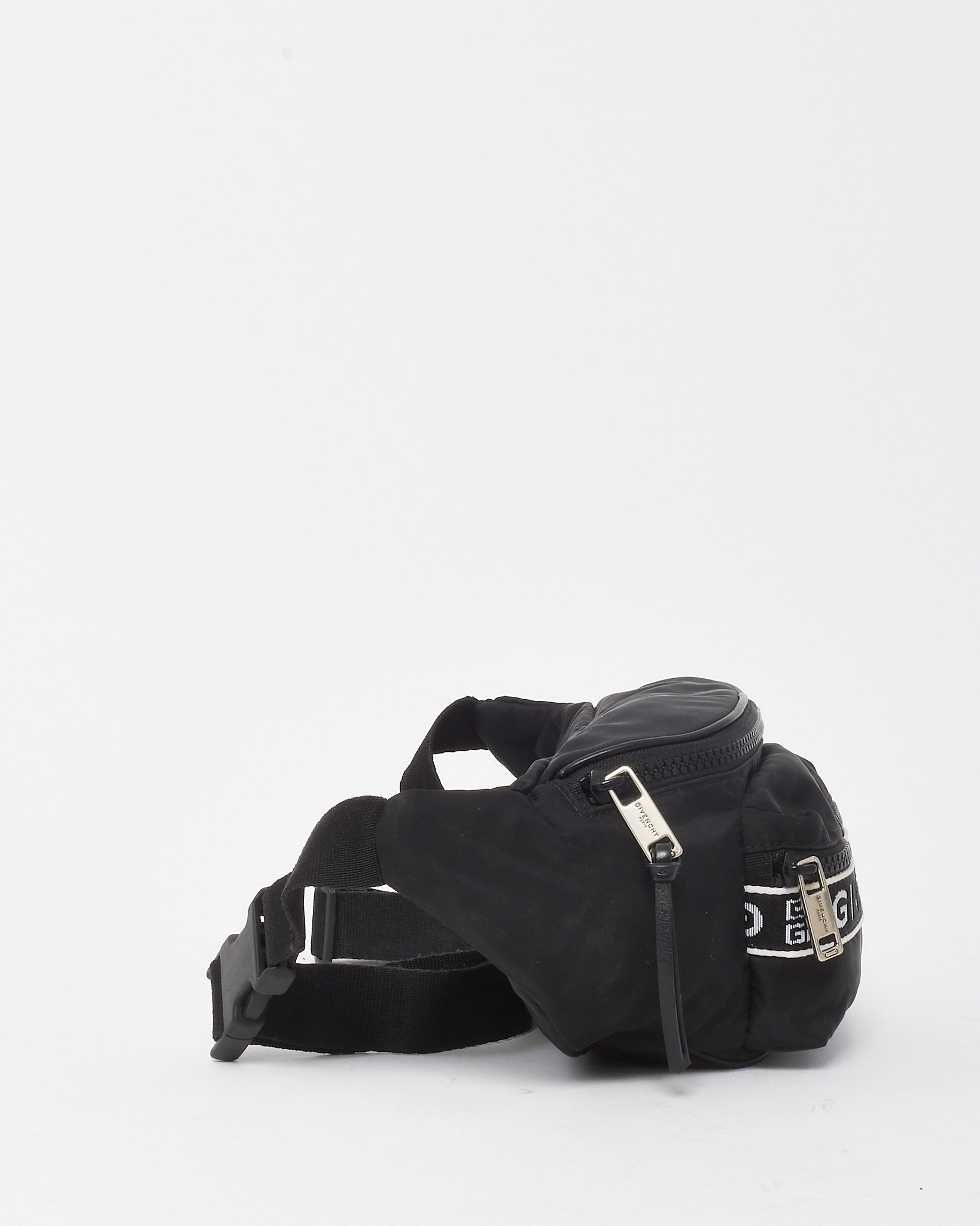 Add a sporty edge to your accessories lineup with this pre-loved authentic Givenchy Black Nylon White Jacquard Logo Belt Bag. Crafted in durable black nylon, this modern belt bag features a bold white Givenchy logo woven across the adjustable strap, bringing signature branding to the forefront. The zippered main compartment offers ample room for essentials, making it a sleek, hands-free choice for everyday errands or weekend outings. Equal parts fashion and function, this urban essential delivers contemporary versatility with unmistakable Givenchy attitude.