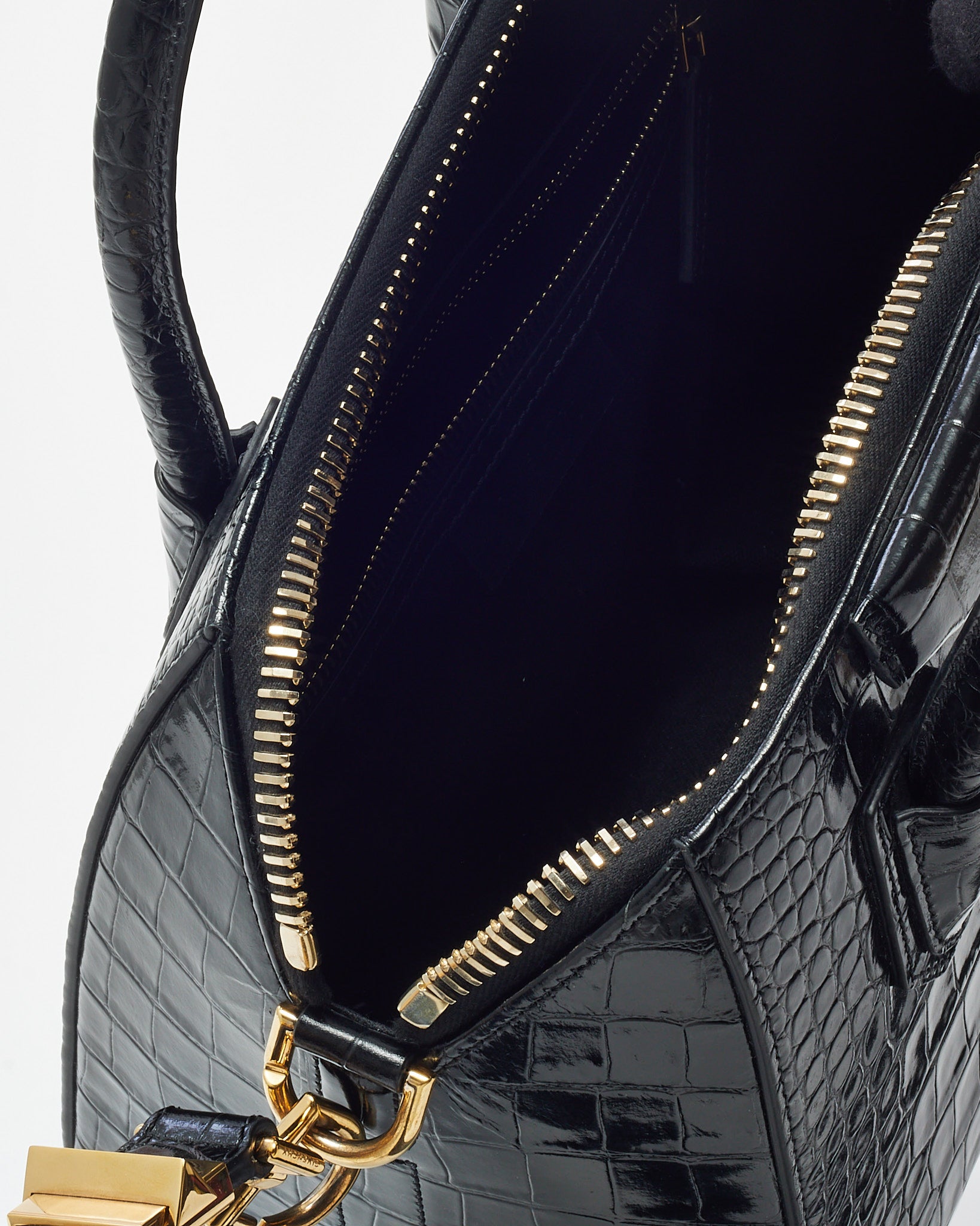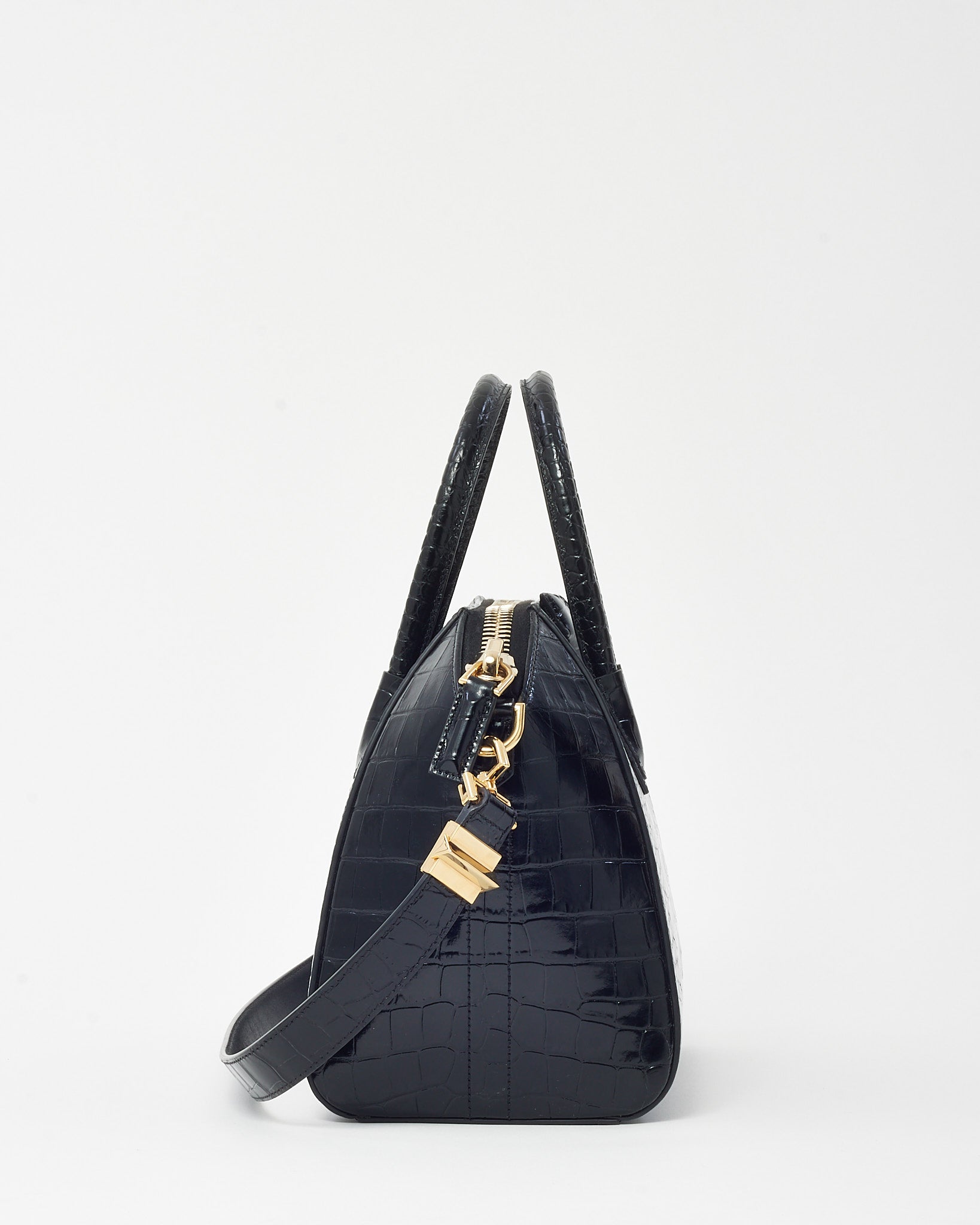 Black Shiny Croc Embossed Leather Small Antigona Bag GHW