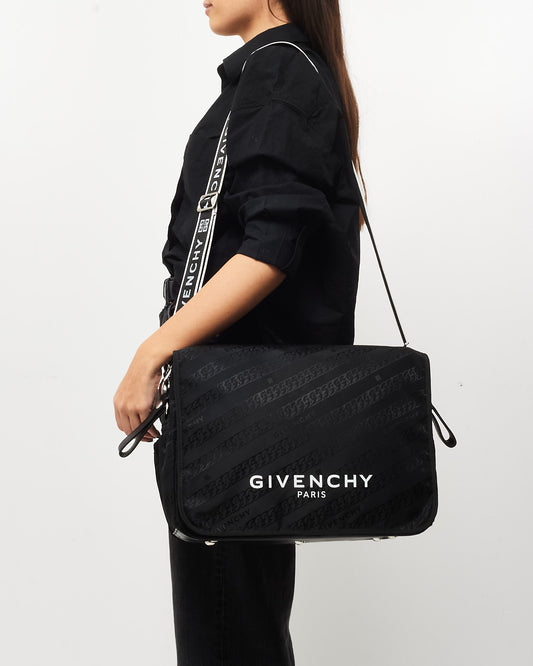 Effortlessly stylish and highly functional, the authentic pre-owned Givenchy Black & White Nylon Logo Diaper Bag combines practicality with designer flair. Crafted from durable black nylon, this diaper bag is adorned with Givenchy’s bold white logo, making it a chic choice for parents on the go.