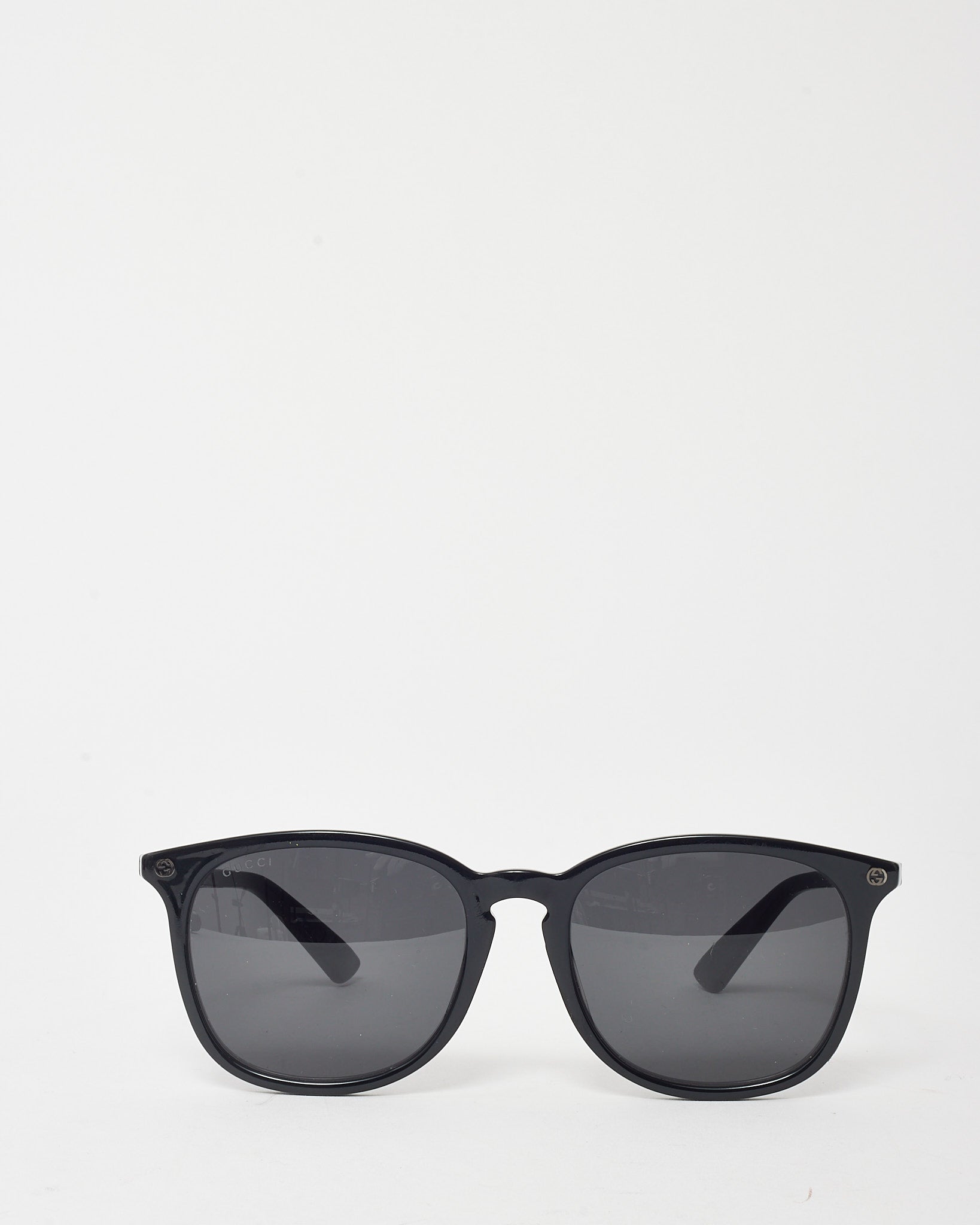 Add classic polish to your eyewear collection with these pre-loved authentic Gucci Black Acetate GG0154SA GG Logo Round Wayfarer Sunglasses. Crafted from glossy black acetate, this rounded wayfarer silhouette features bold curves, gradient lenses with full UV protection, and the signature gold GG logo at the temples. Timeless yet contemporary, these sunglasses offer versatile styling with a refined edge—perfect for elevating casual and tailored looks alike.