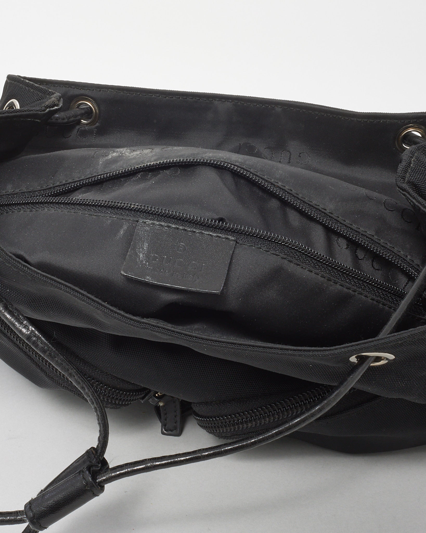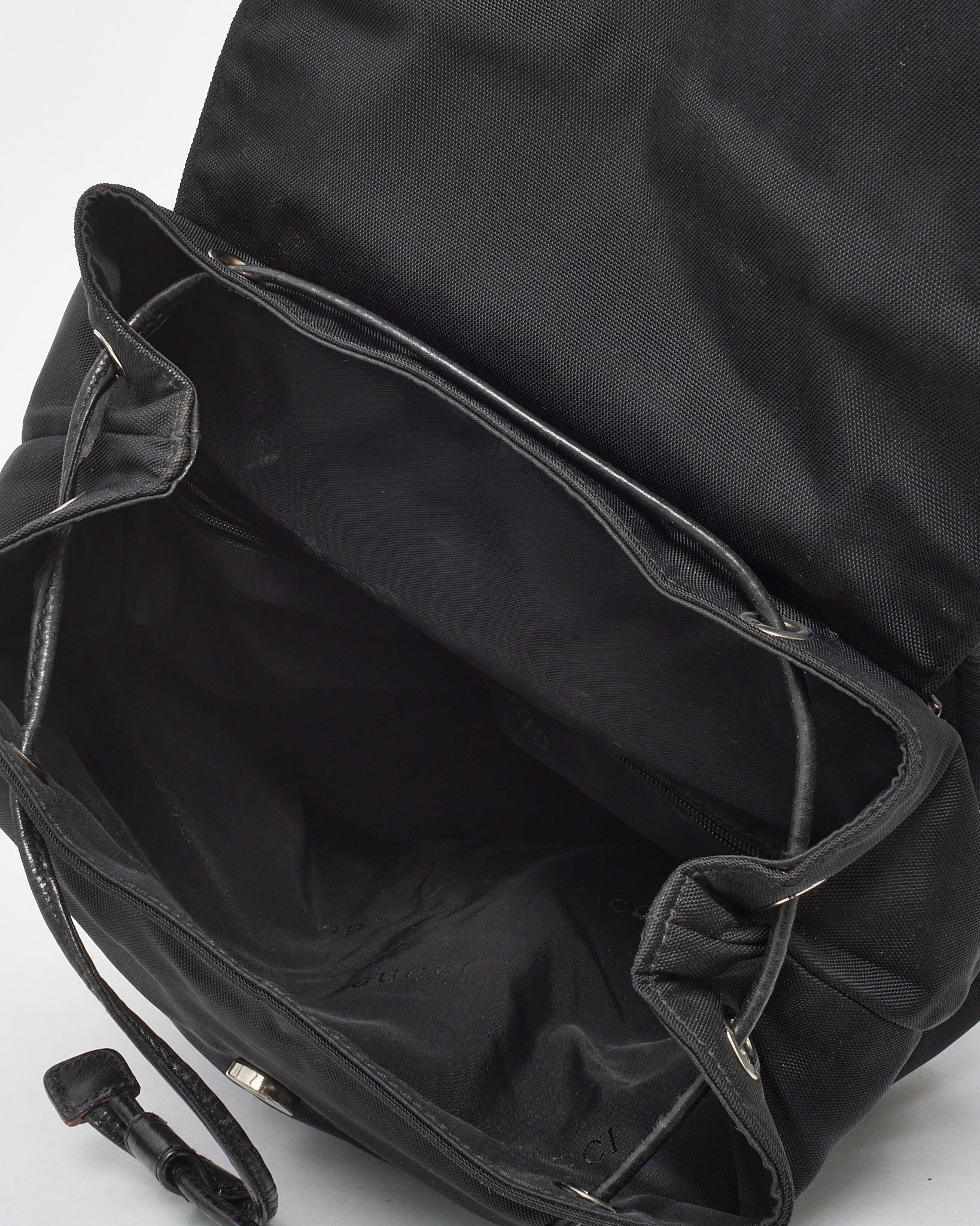 A refined balance of functionality and fashion, this pre-loved authentic Gucci Drawstring Rucksack Backpack is crafted from durable black canvas with tonal leather trim and a structured silhouette. Featuring the iconic logo plate, this versatile piece offers a spacious interior, adjustable shoulder straps, and a top drawstring closure. Ideal for everyday wear or travel, it’s a practical yet elevated addition to any luxury wardrobe.