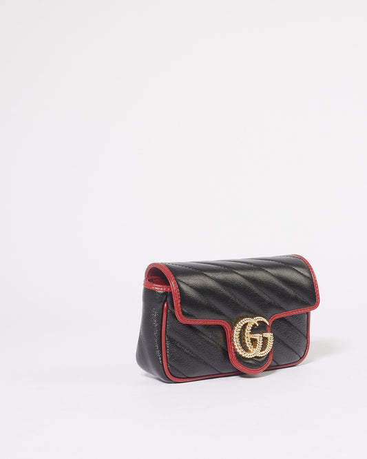 Black/Red Matelassé Diagonal Leather Torchon GG Marmont Super Mini Bag