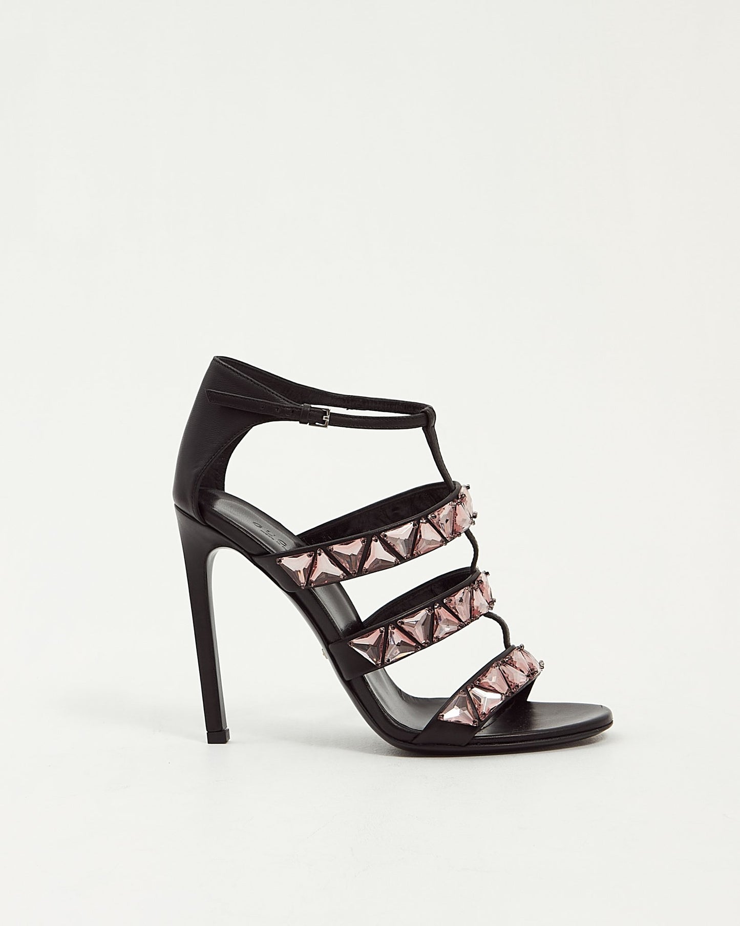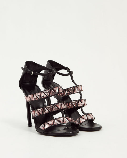 Black Leather With Pink Crystal Sandal Heel - 38
