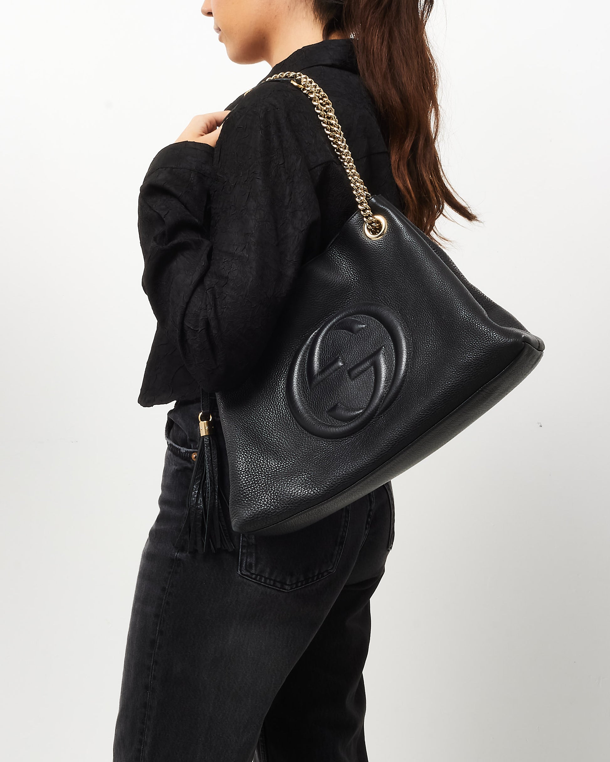 Black Pebbled Leather GG Soho Chain Shoulder Bag