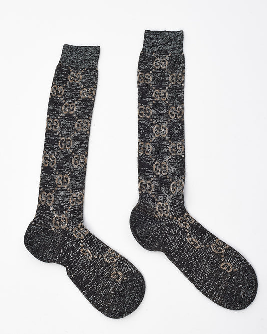 Black Sparkly Lurex & Beige Monogram Logo Knit Socks - S
