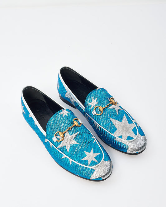 Gucci Blue & Silver Star Sparkle Jordaan Loafers -37.5