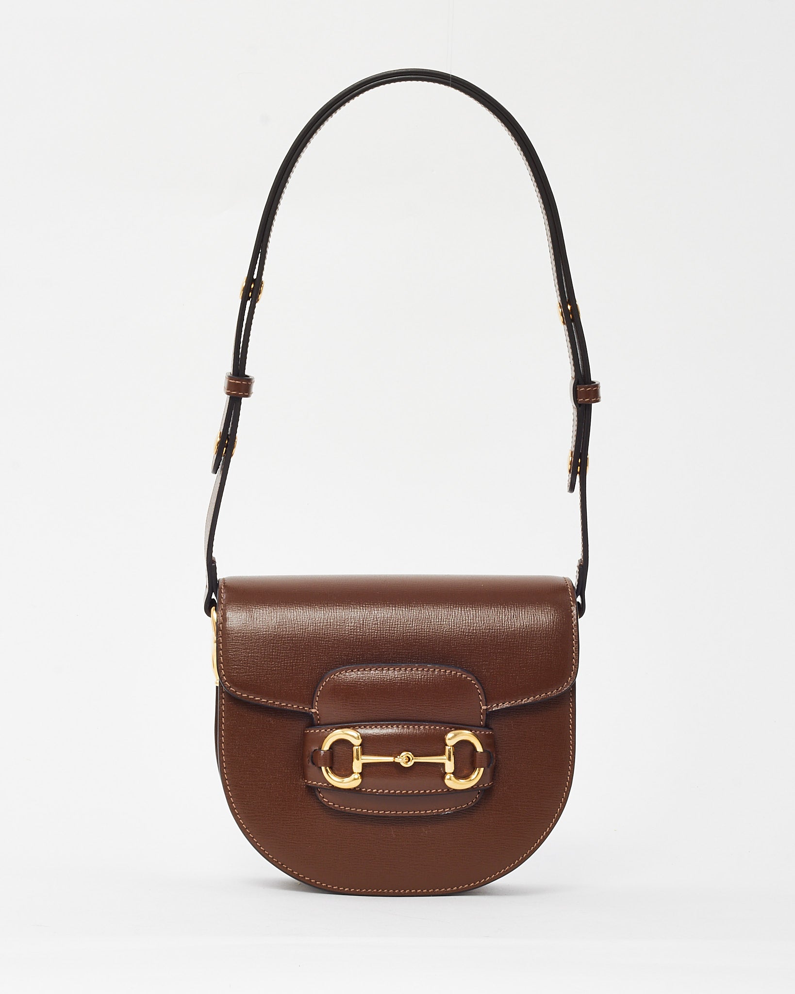 Brown Azalea Calfskin Round Mini Horsebit 1955 Shoulder Bag