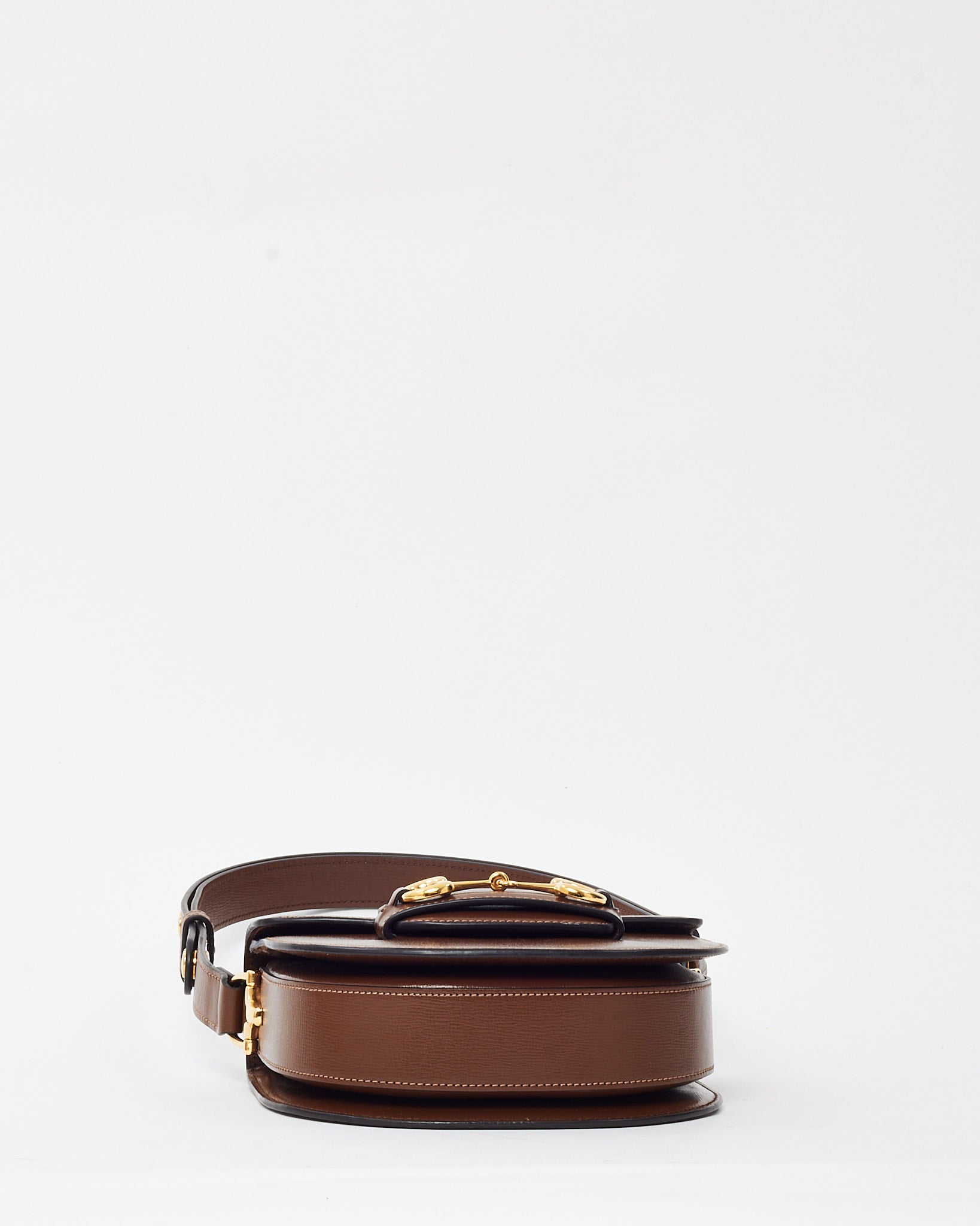 Infuse heritage charm into your look with this pre-loved authentic Gucci Horsebit 1955 Round Mini Shoulder Bag, crafted from supple brown Azalea calfskin leather. This compact, circular silhouette features the iconic gold-tone horsebit detail, a nod to Gucci’s equestrian legacy, and a structured shape with a top zip closure. Finished with an adjustable leather strap, it’s a refined and versatile piece perfect for hands-free styling.