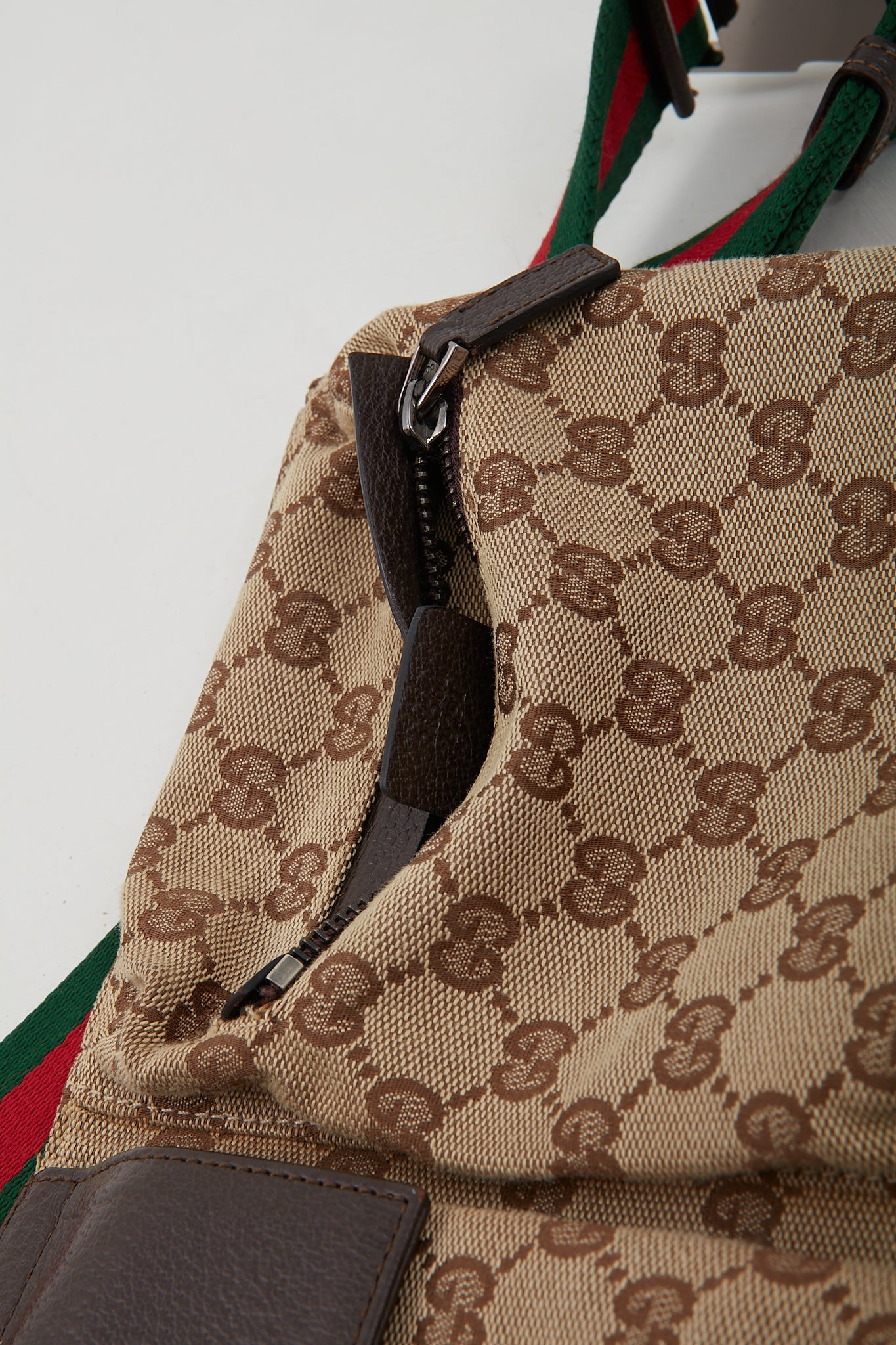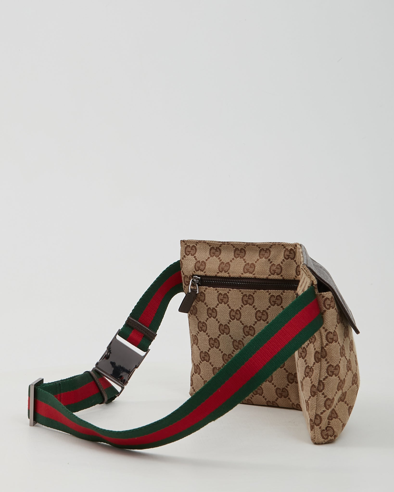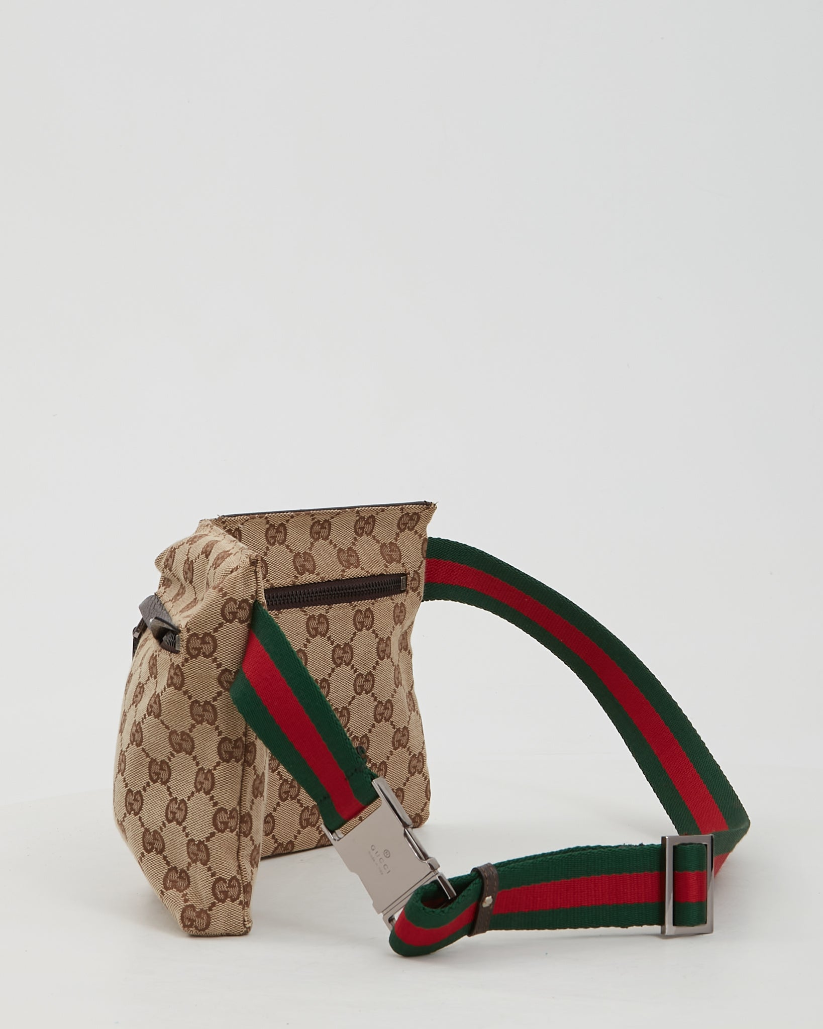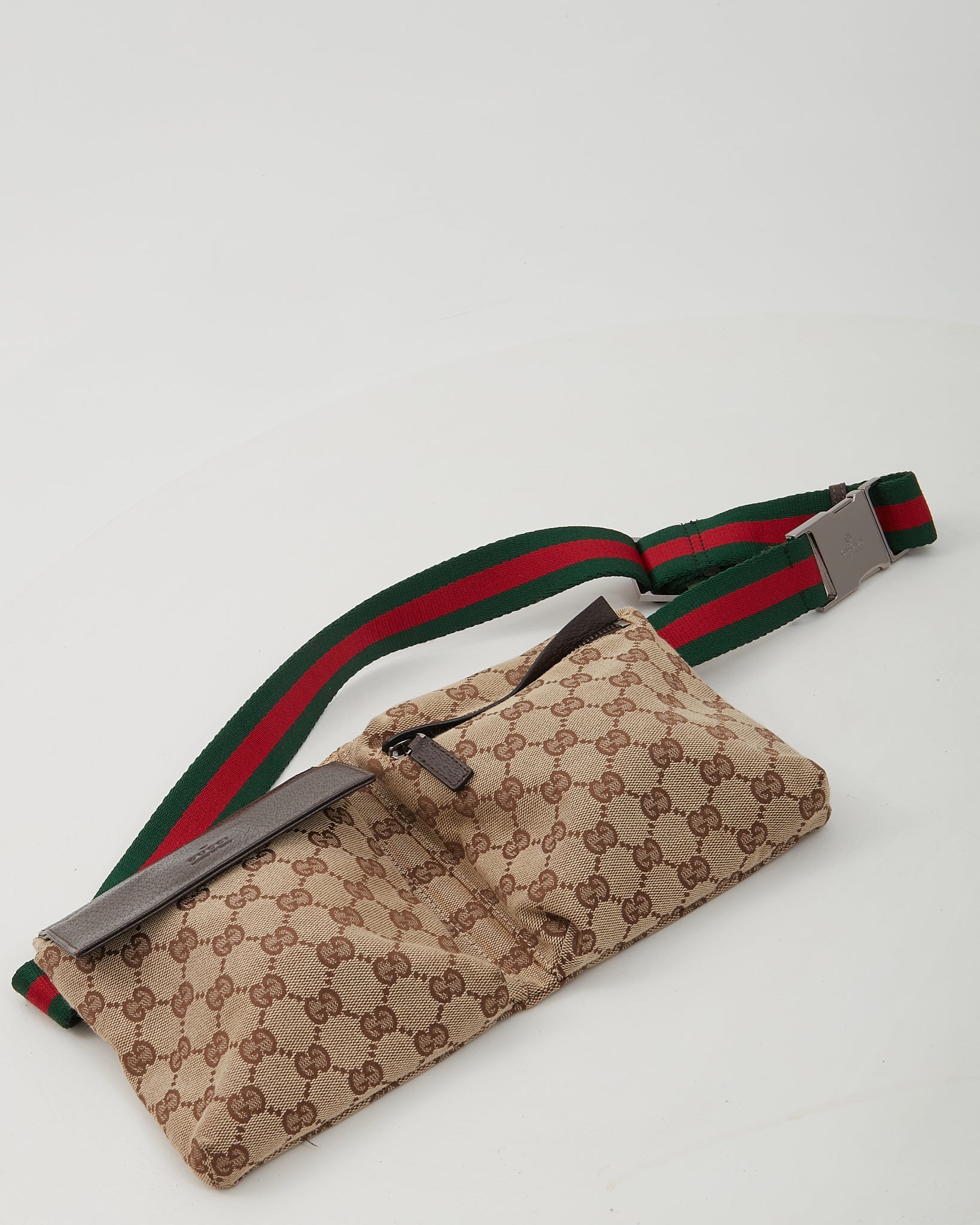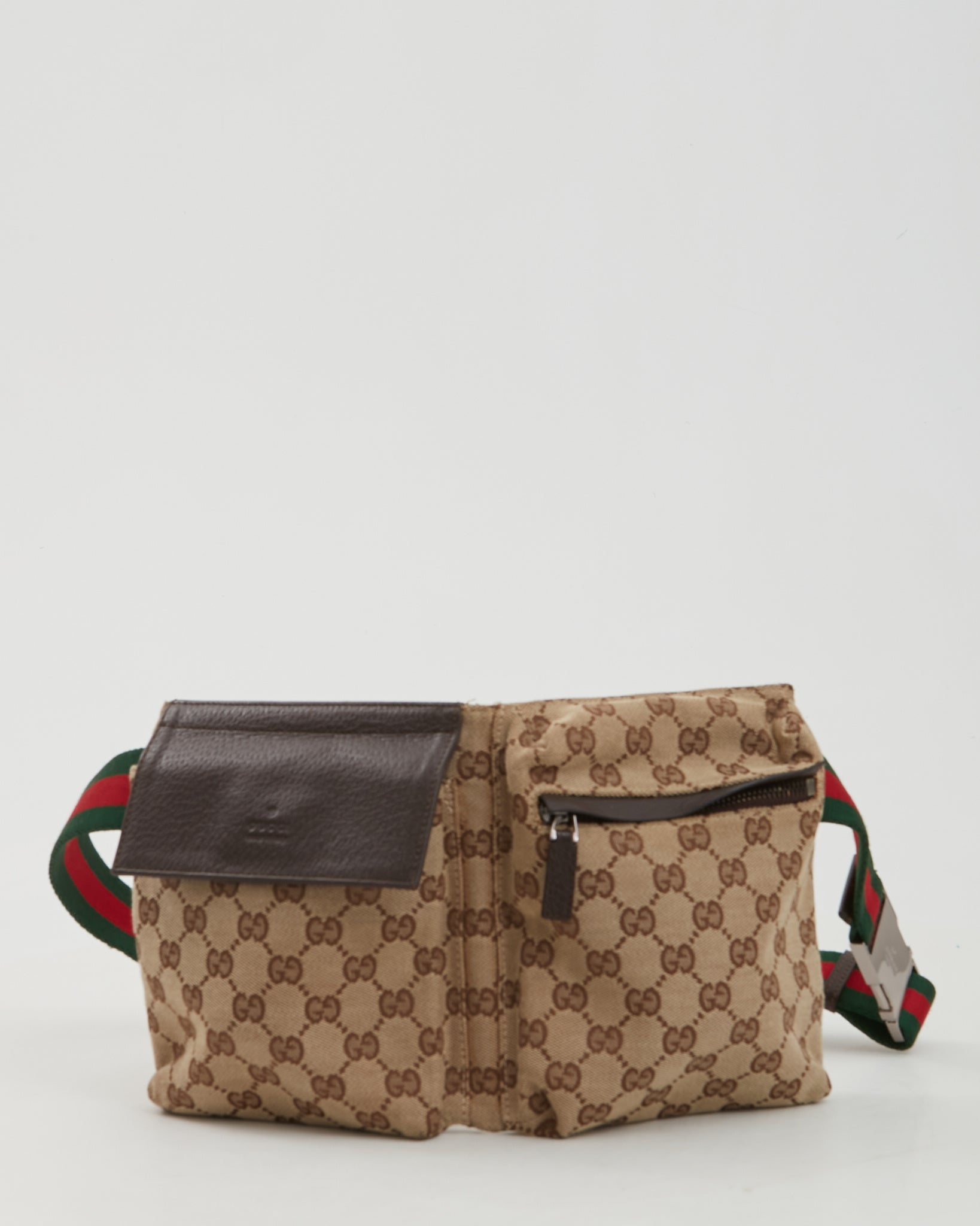 Brown Canvas GG Pocket Web Belt Bum Bag