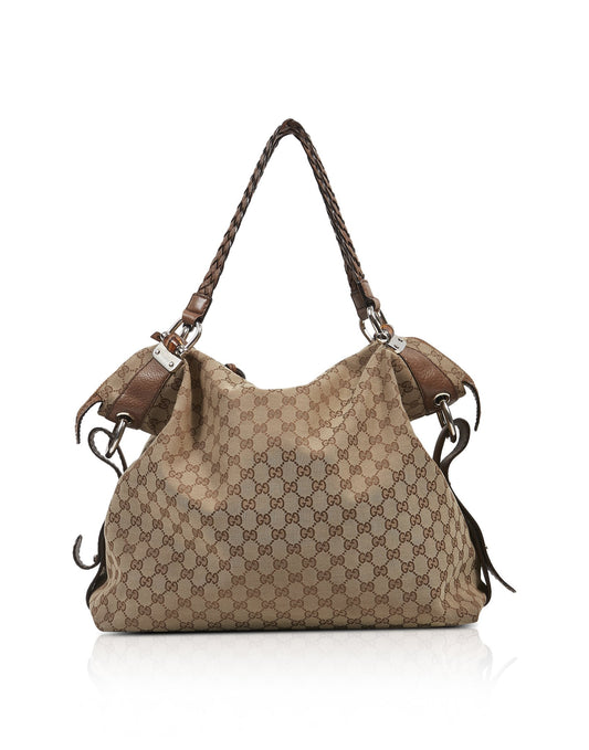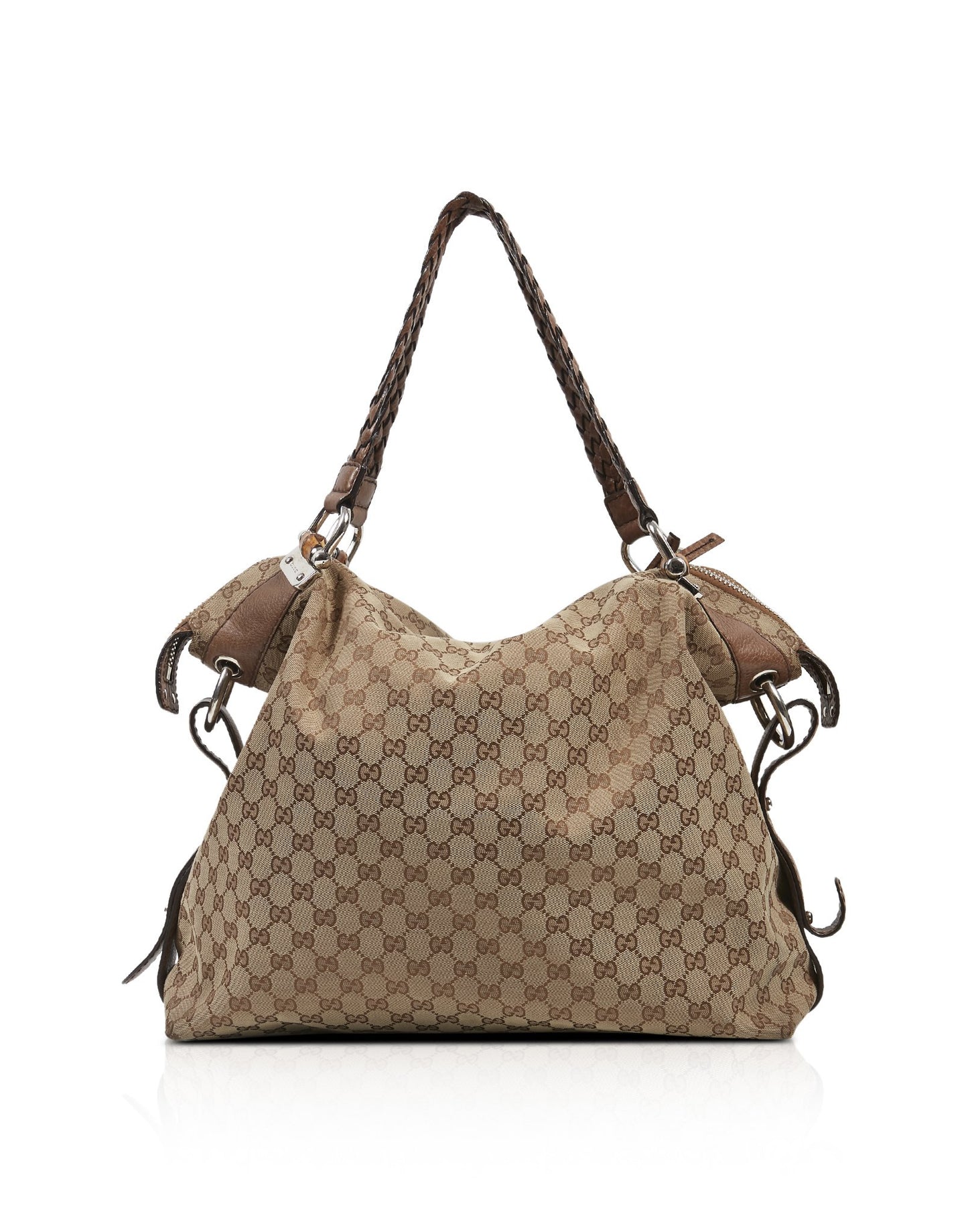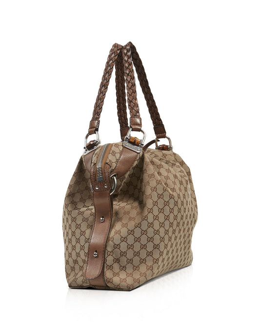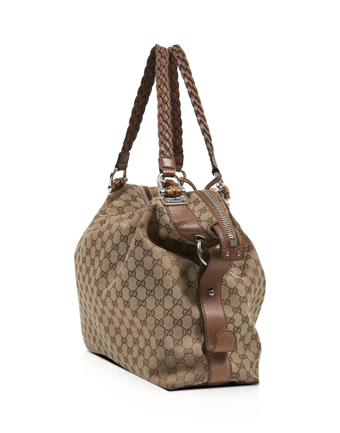 Brown GG Supreme Canvas Bamboo Bar Tote