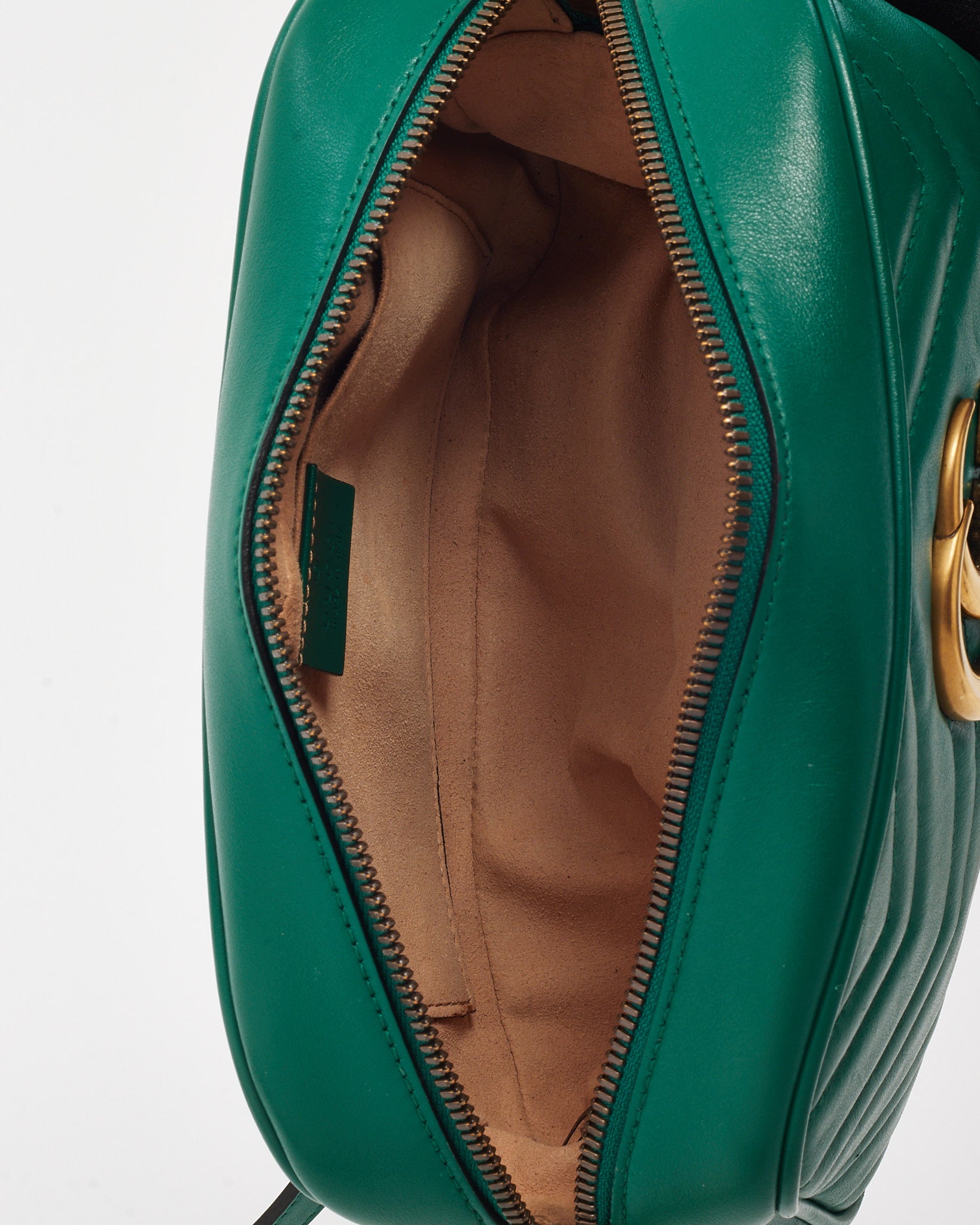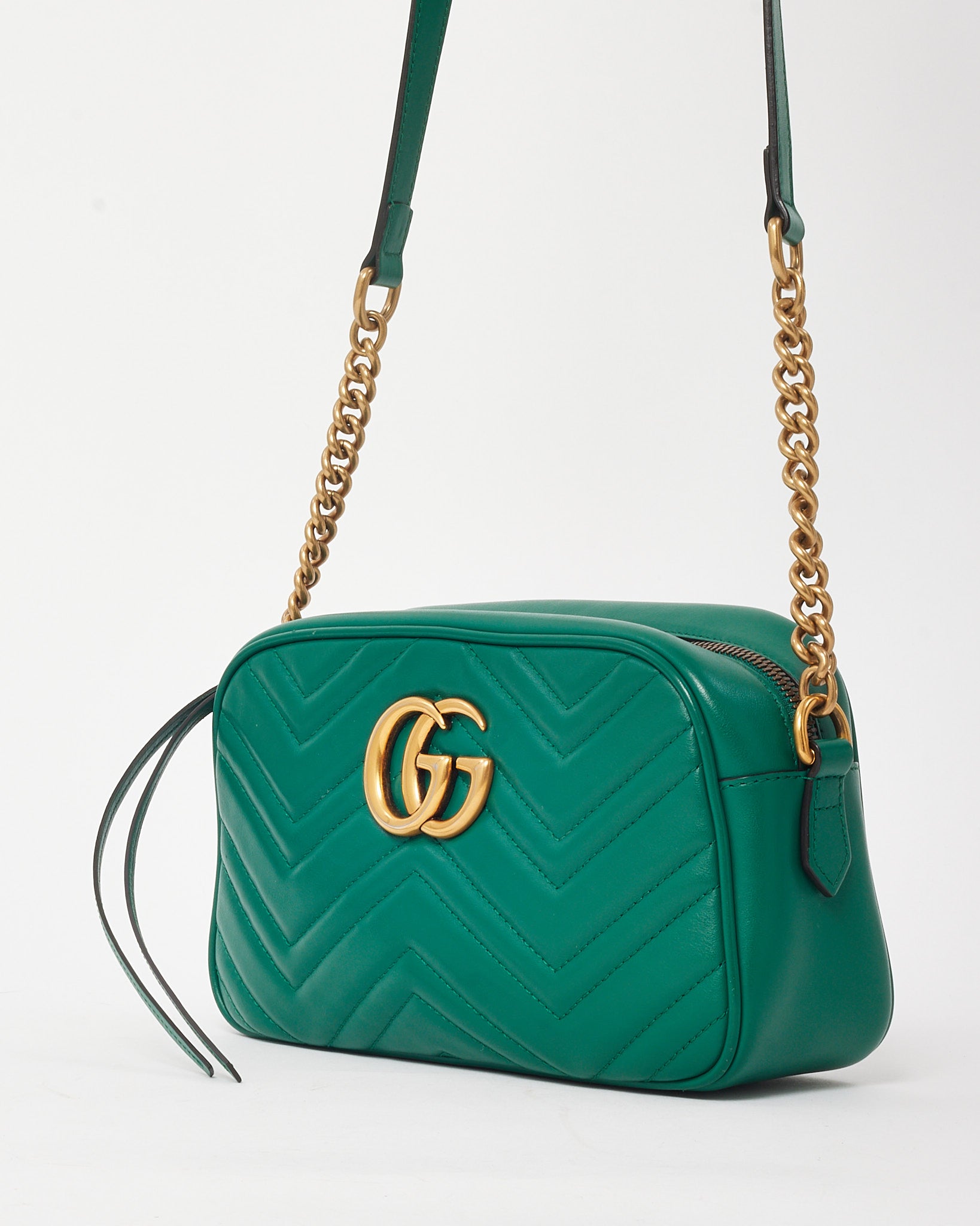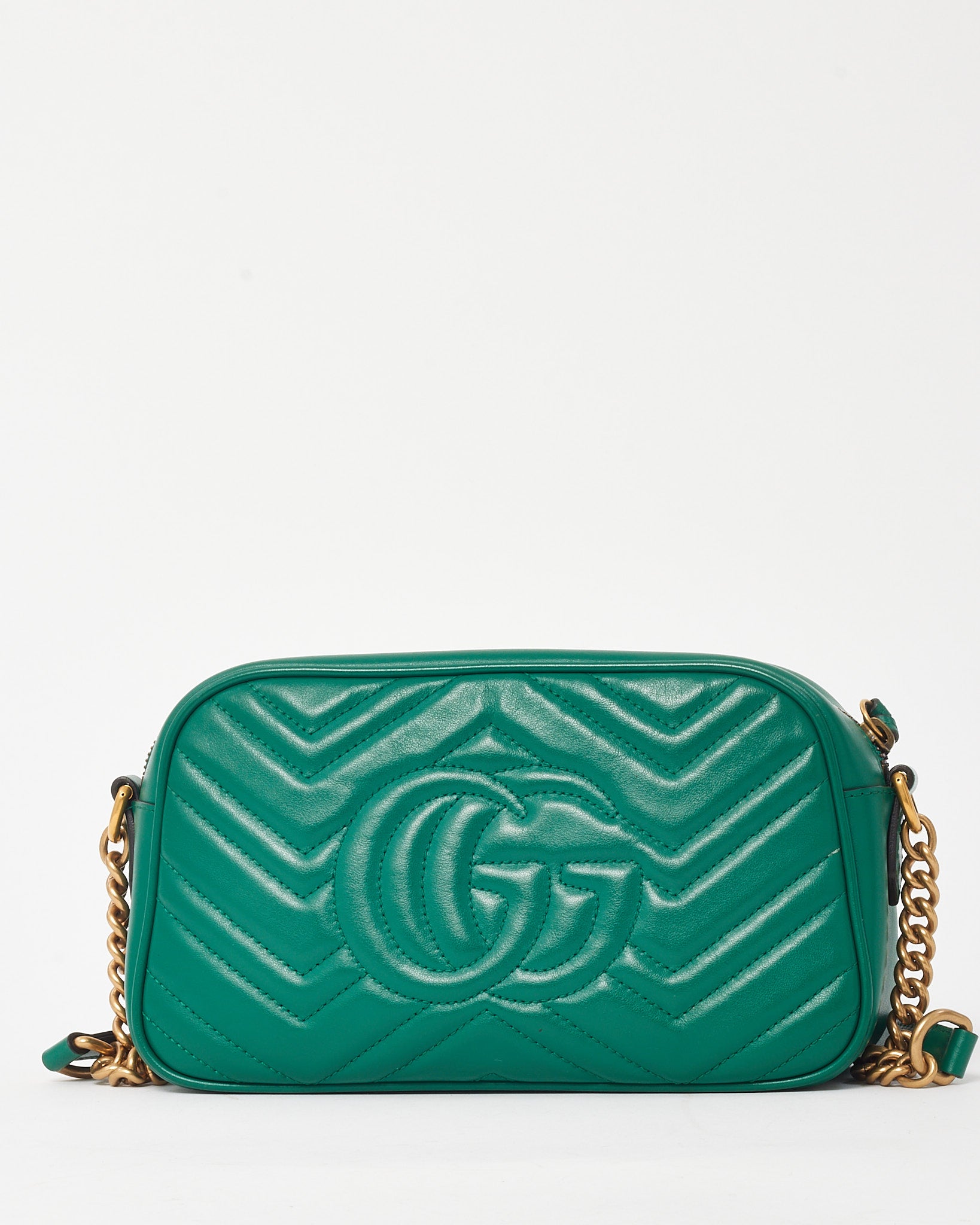 Green Matelassé Chevron Leather GG Marmont Small Camera Bag