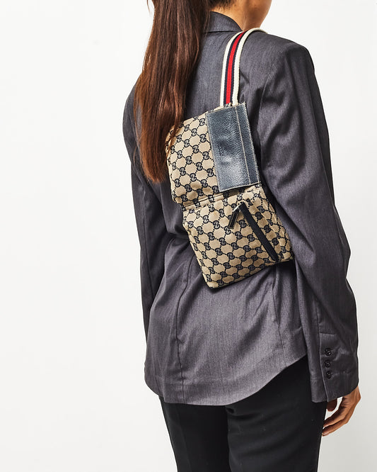 Navy & Beige Monogram GG Canvas Double Pocket Belt Bag
