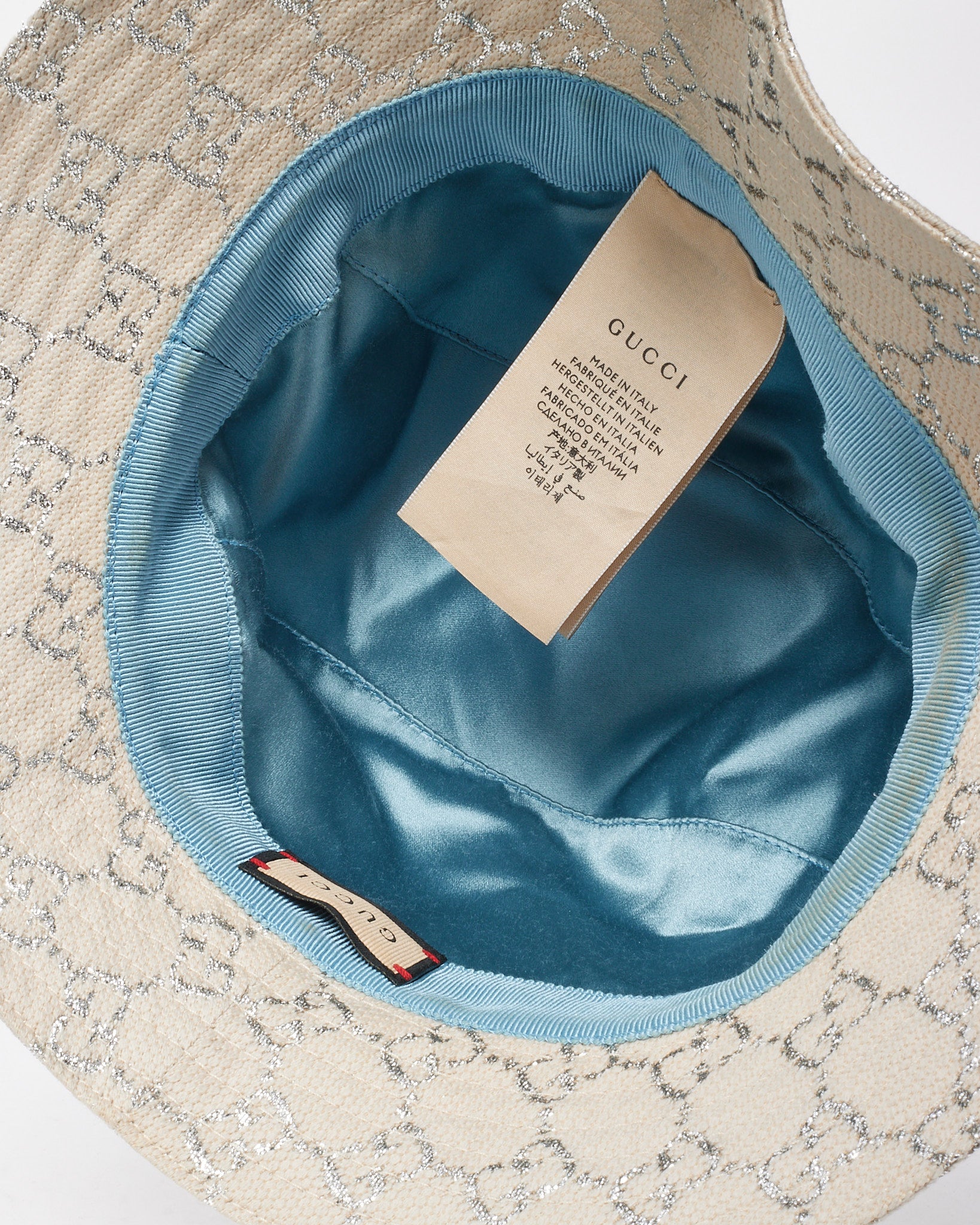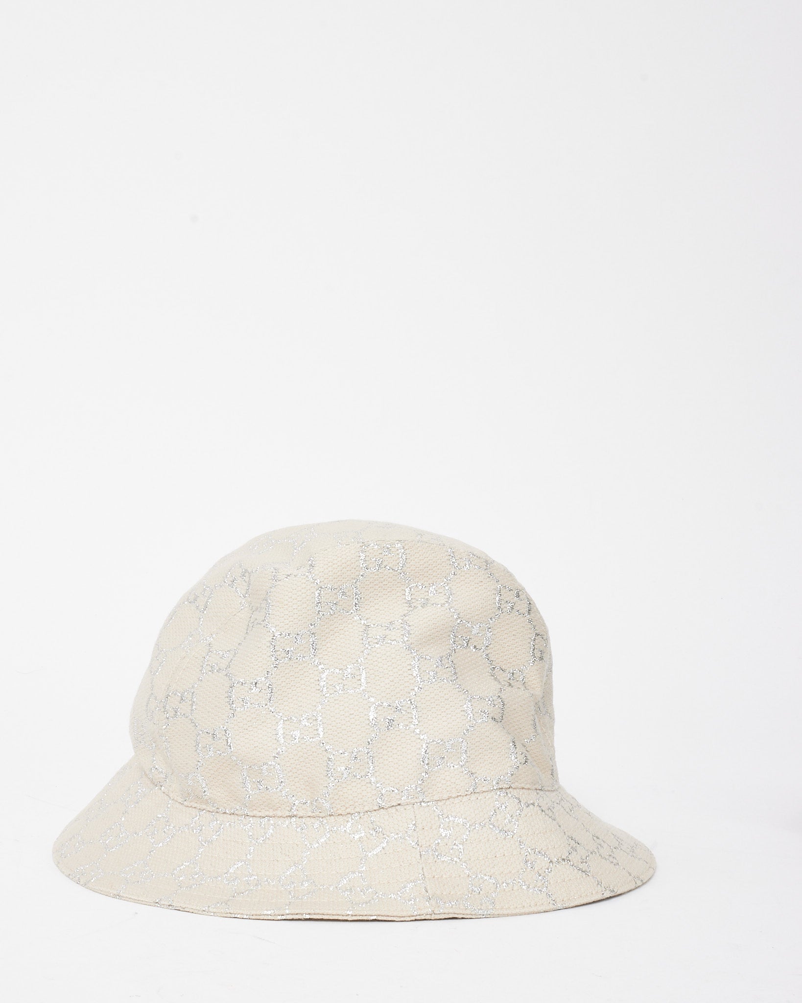 Neutral Beige Wool Knit Siver Lame GG Monogram Bucket Hat - S