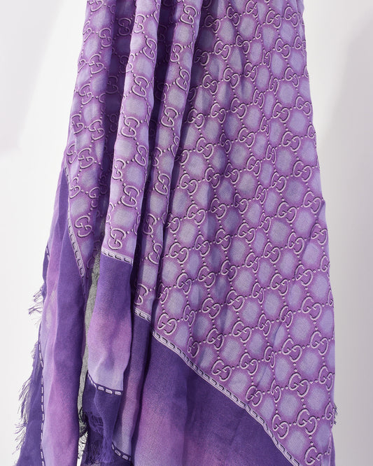Purple GG Monogram Logo Modal & Silk Scarf