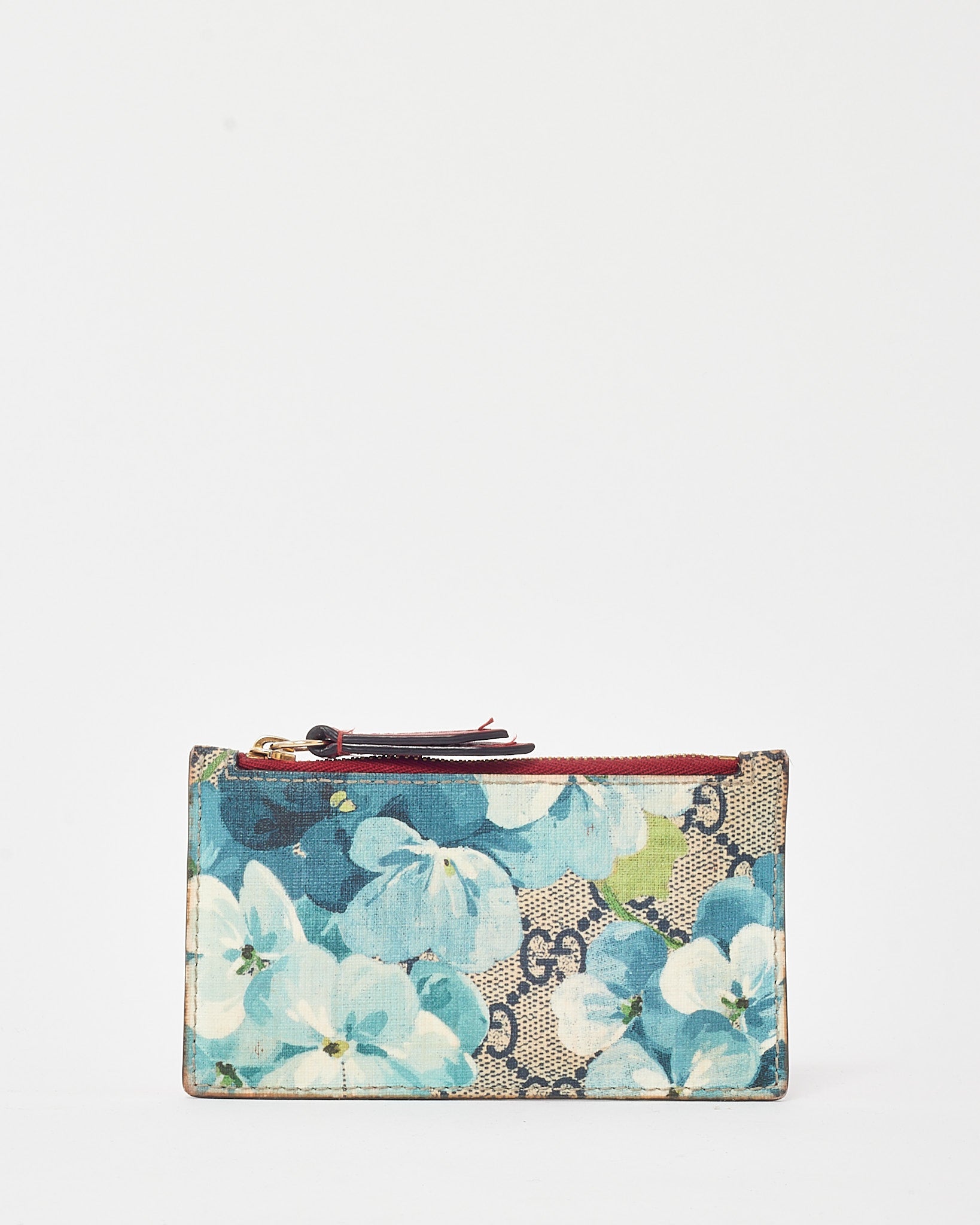 Brighten your everyday carry with this pre-loved authentic Gucci Red GG Supreme Monogram Blooms Coated Canvas Card Case. Featuring the house’s signature GG Supreme canvas adorned with a vibrant red floral Blooms print, this compact accessory is both eye-catching and functional. Trimmed with red leather and designed with multiple card slots and a central slip pocket, it keeps your essentials organized in sleek style. Perfectly petite, it slips effortlessly into any handbag while adding a romantic, signature Gucci touch.