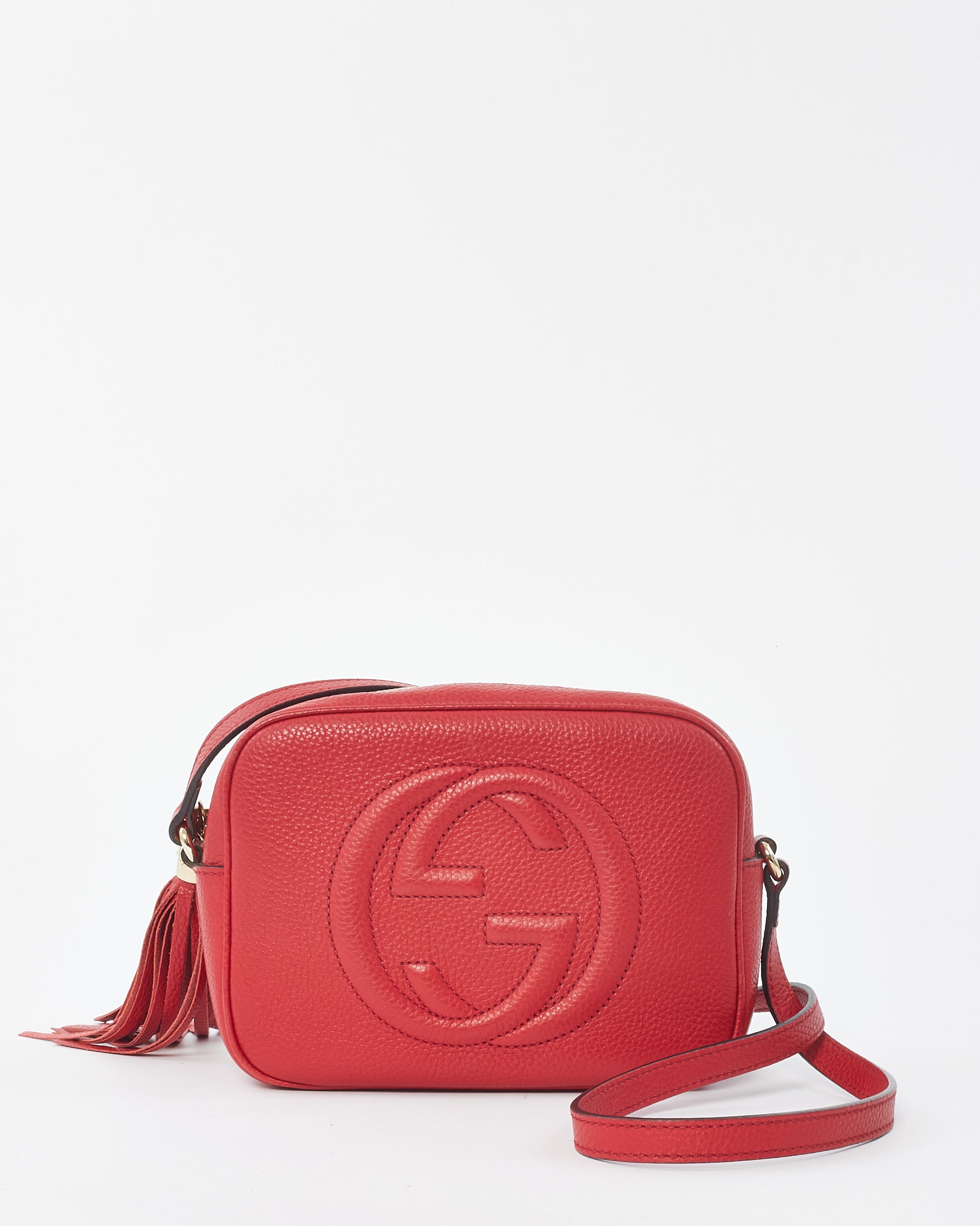 Explore Gucci's exquisite collection of handbags, featuring this certified pre-owned Red Leather Soho Disco Crossbody Bag. Embodying timeless elegance and modern sustainability, each piece, including favorites like this, is authenticated by Retyche. Discover sustainable luxury — shop our current treasures or find inspiration for your next coveted find.