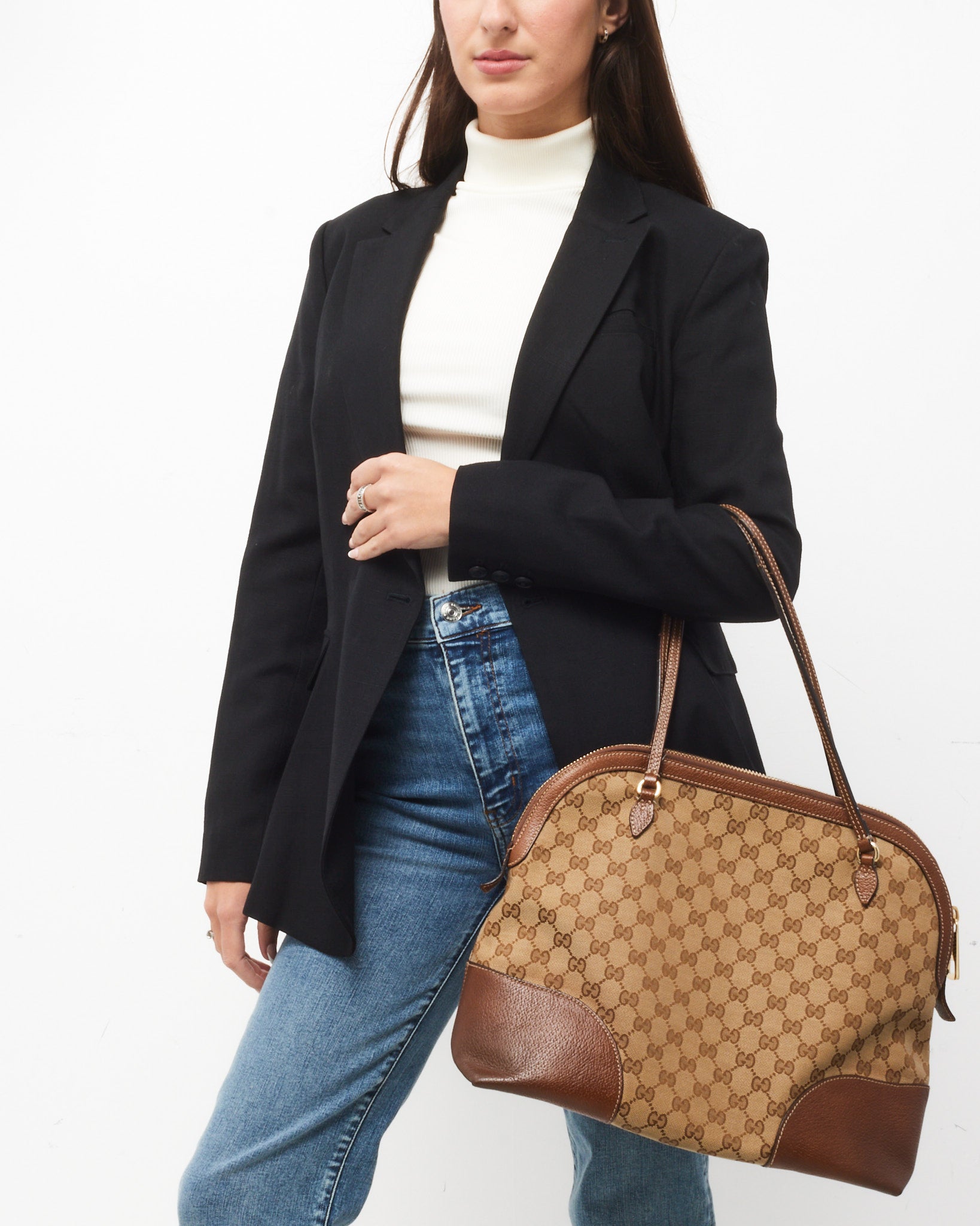 Elevate your everyday style with this pre-loved authentic Gucci Tan Leather Beige and Ebony GG Monogram Canvas Medium Bree Shoulder Bag. A harmonious blend of classic and contemporary, this roomy shoulder bag is crafted from Gucci’s iconic GG canvas and supple tan leather trim. The soft, rounded silhouette features gold-tone hardware, a top zip closure, and dual leather shoulder straps for comfortable wear. The spacious fabric-lined interior includes multiple compartments and pockets, making it ideal for organizing daily essentials. Versatile and timeless, this piece is perfect for both casual and polished looks.