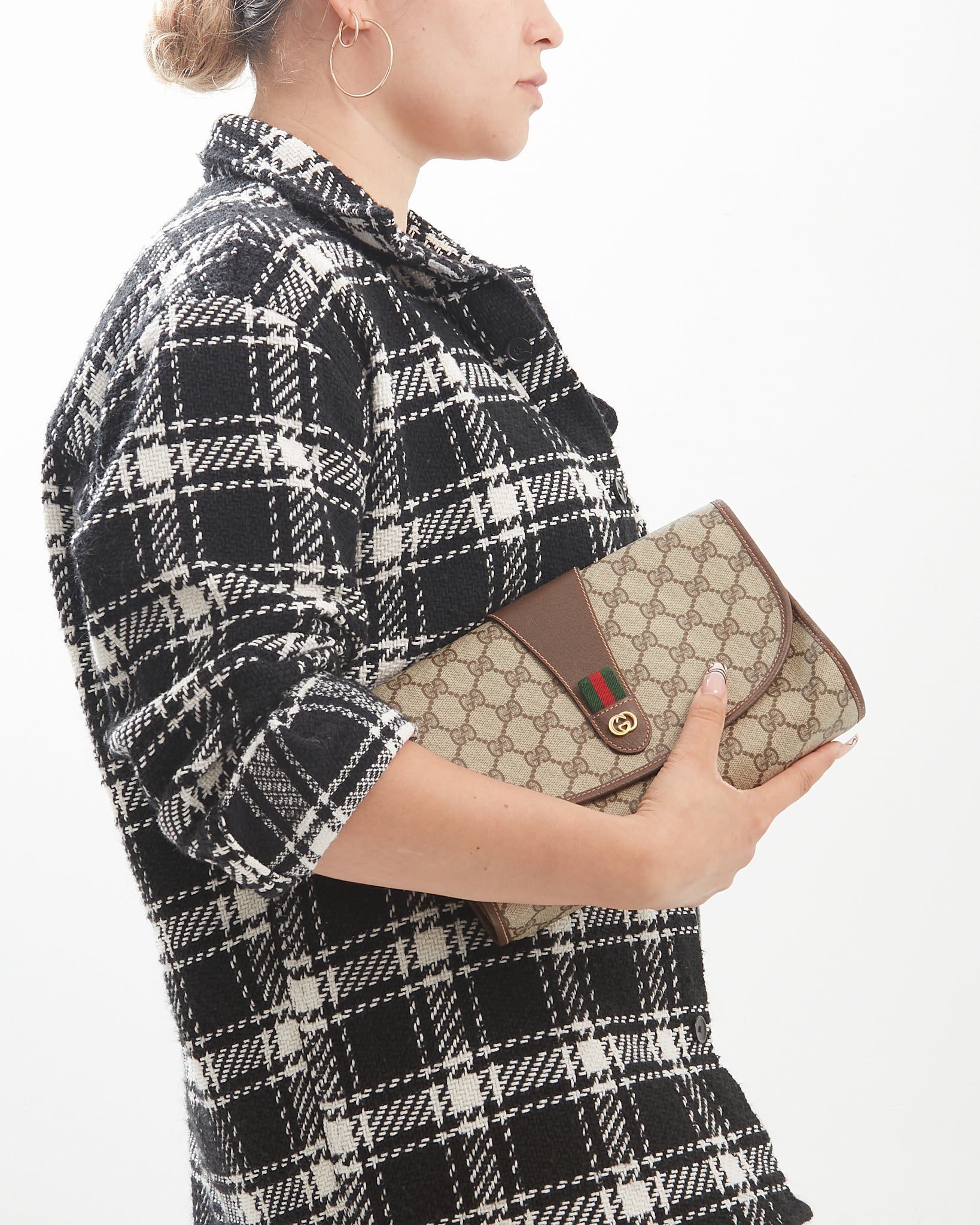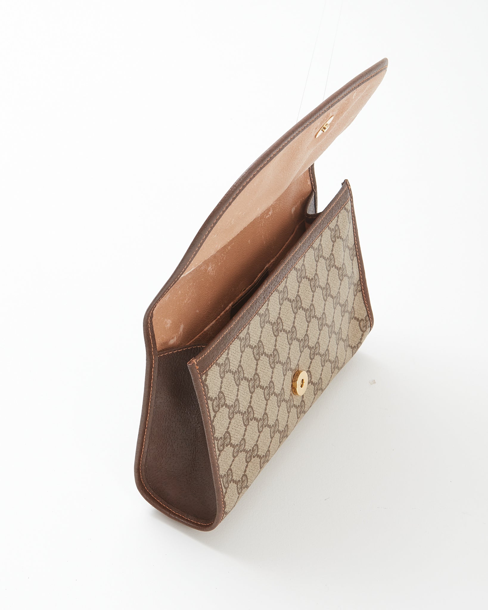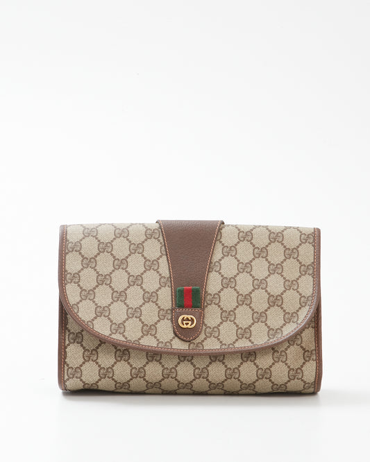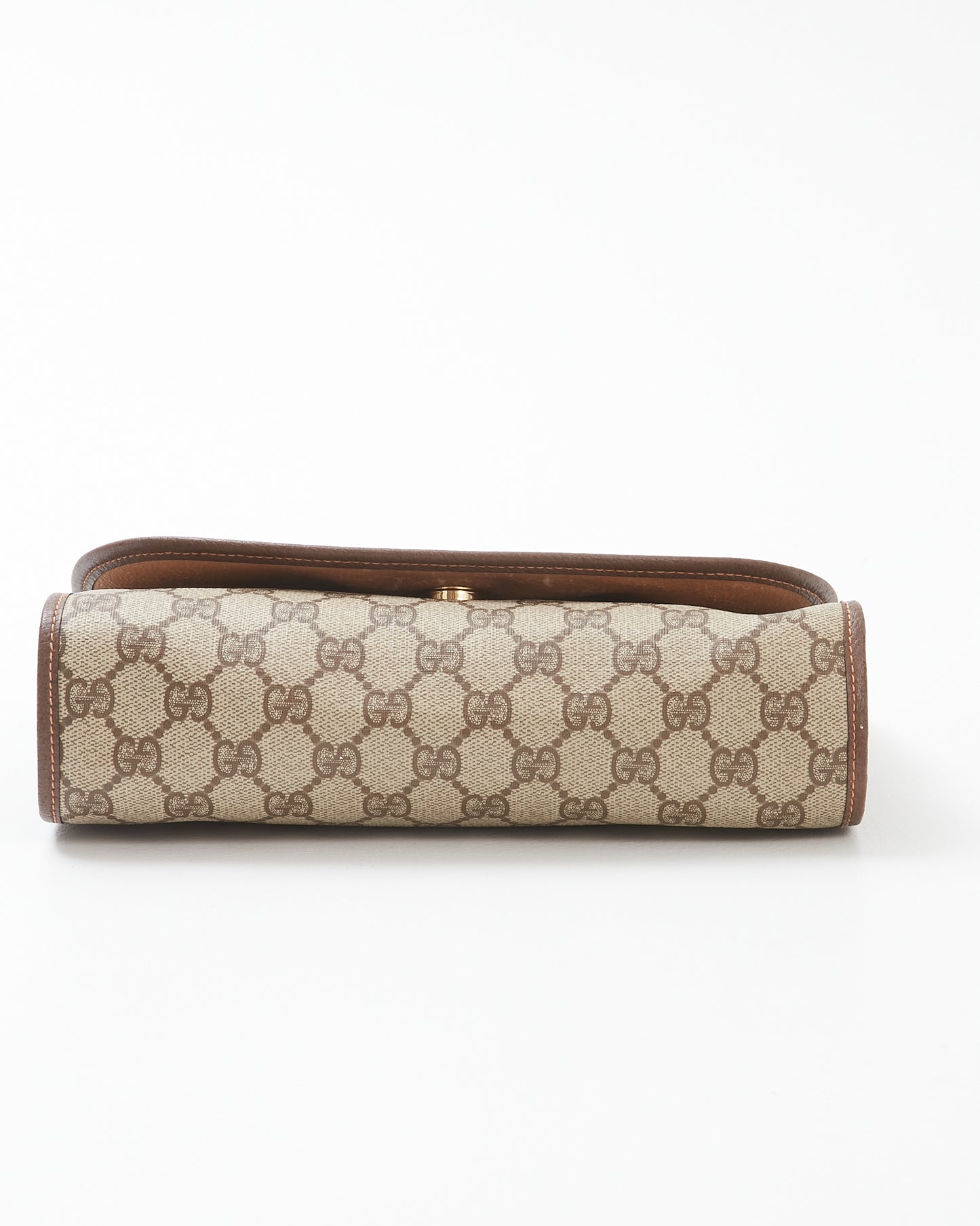 Vintage Brown GG Supreme Coated Canvas Web Clutch