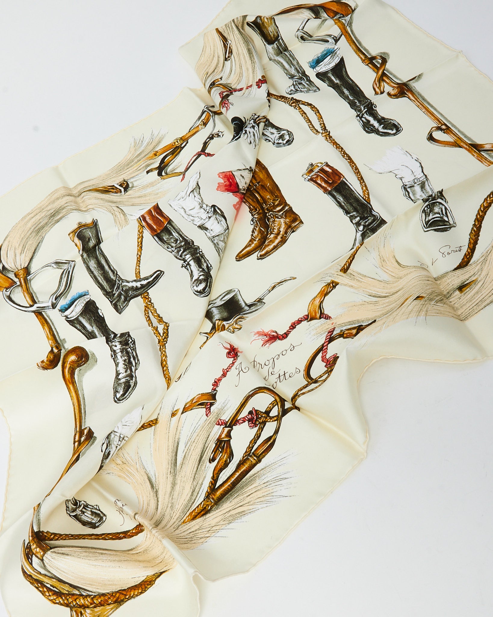 Beige/Cream/Gold/Brown Multi "A Propos de Bottes" 90cm Silk Scarf