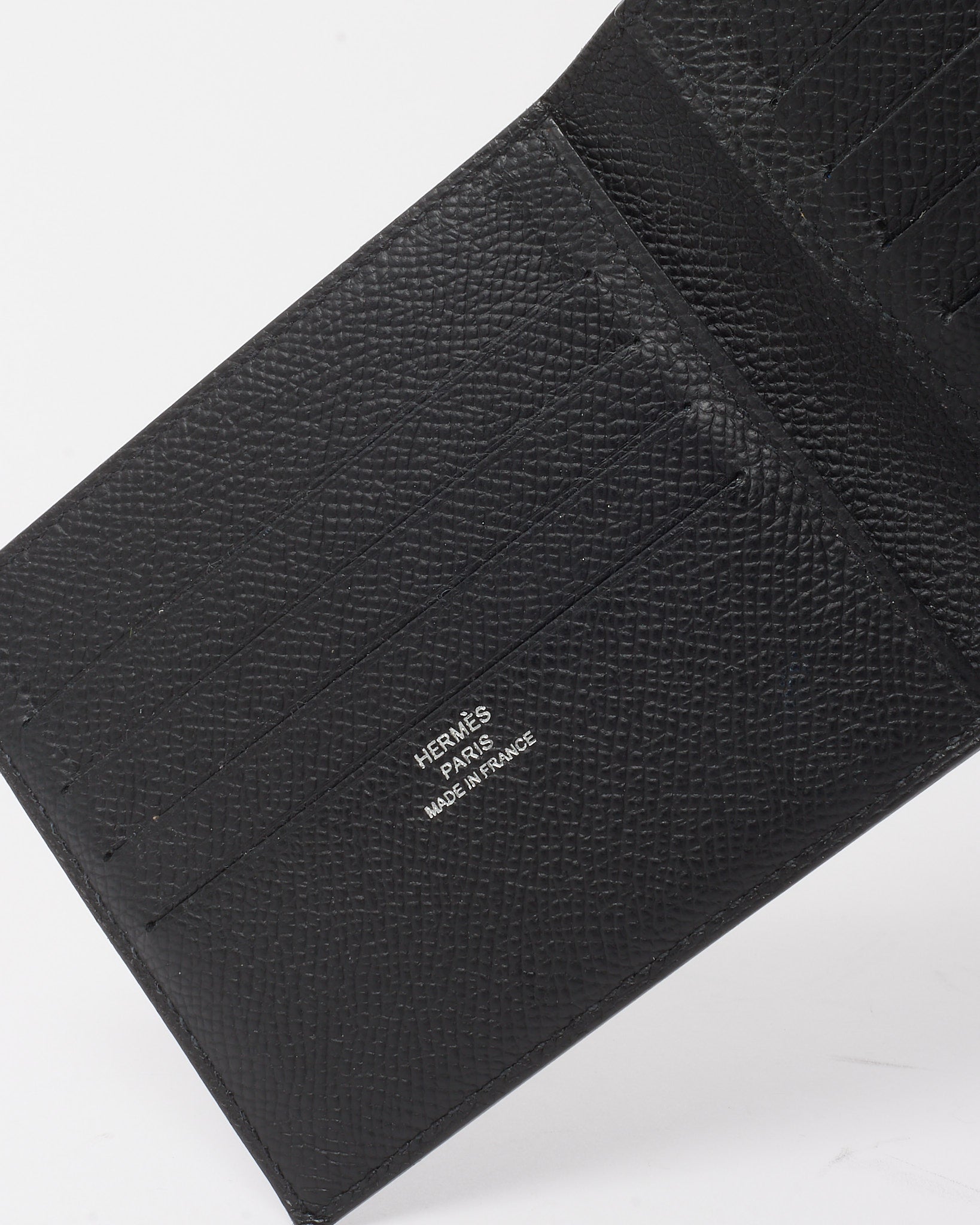 A refined expression of compact elegance, this pre-loved authentic Hermès Citizen Twill card holder is crafted from durable black Epsom leather, prized for its structured texture and resistance to wear. The bi-fold design opens to reveal a silk twill-lined interior that nods to the maison’s heritage, offering multiple card slots and a central compartment ideal for essentials. Slim and lightweight, it slips easily into pockets or mini bags, blending practical function with timeless sophistication. Perfect for those who value everyday luxury in its most understated form.