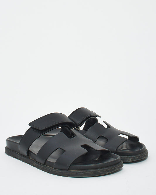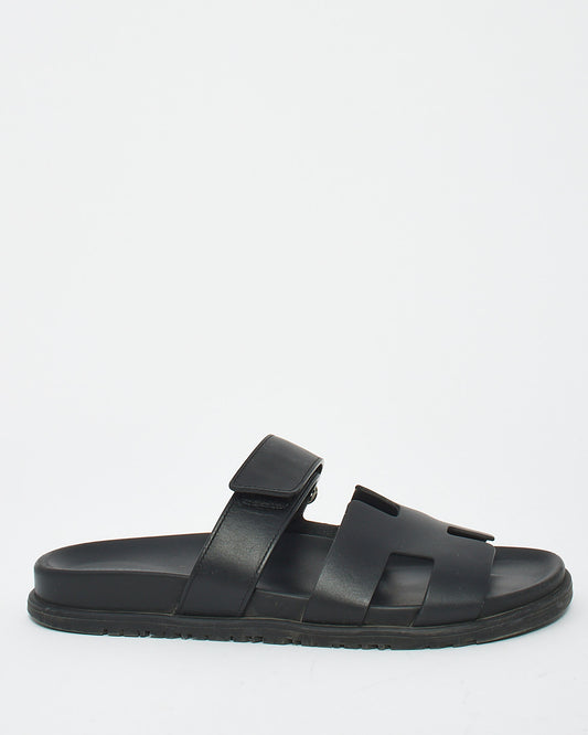 Black Leather Chypre Sandals - 40