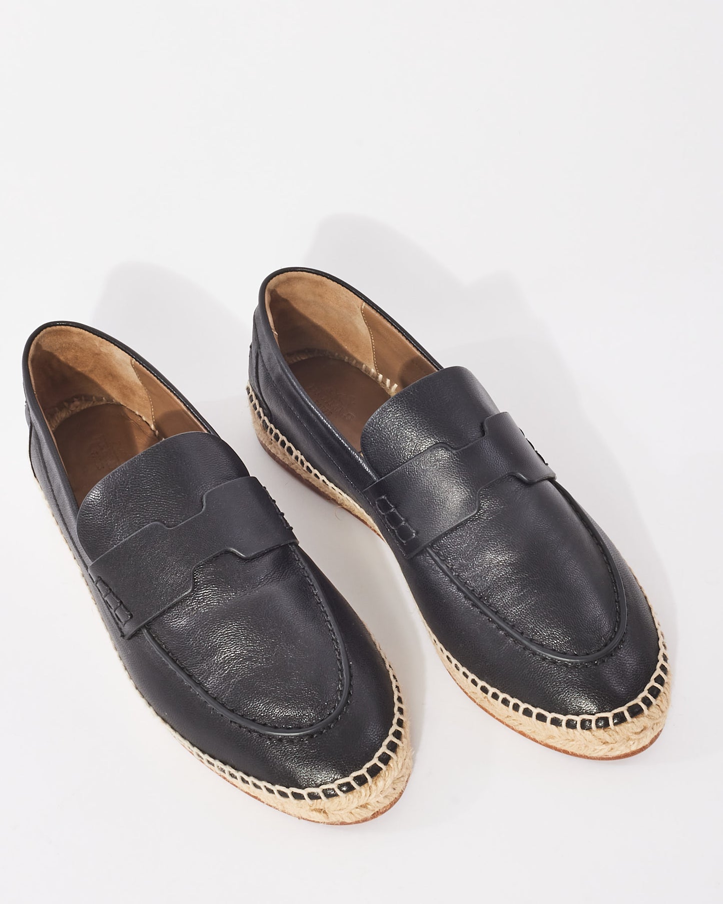 Explore Hermès' exquisite collection of shoes, featuring this certified pre-owned Black Leather Trip Espadrille Flats. Embodying timeless elegance and modern sustainability, each piece, including favorites like this, is authenticated by Retyche. Discover sustainable luxury — shop our current treasures or find inspiration for your next coveted find.