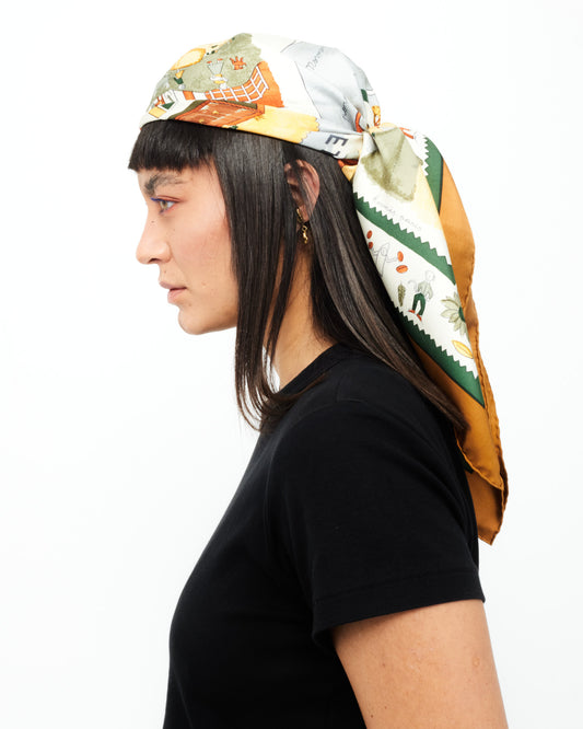 Brown & Blue Multi "Retour A La Terre" Silk Scarf