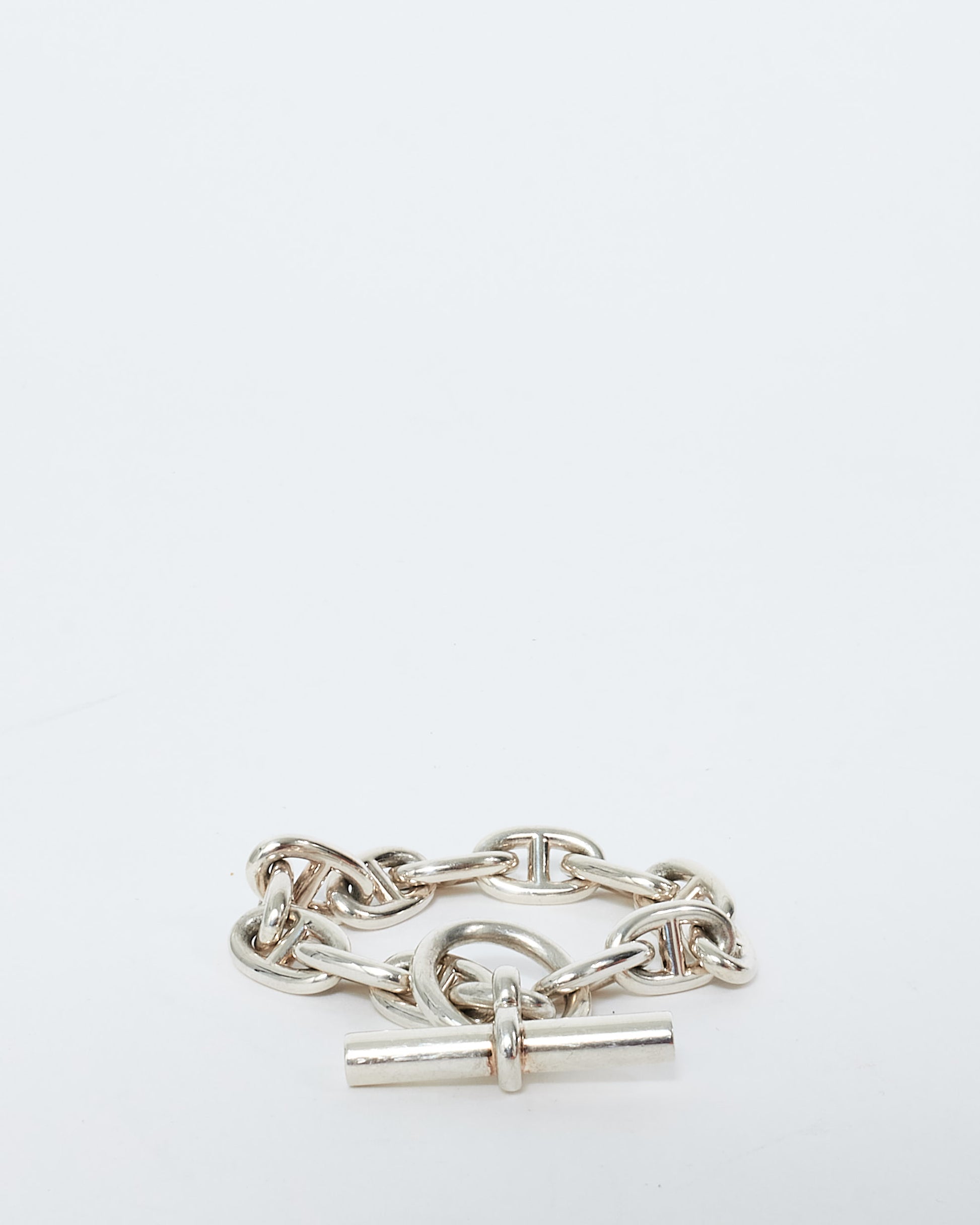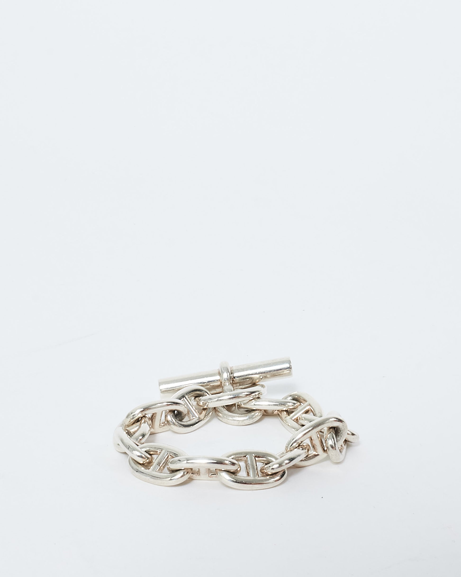 Explore Hermès's exquisite collection of Jewelry, featuring this certified pre-owned Sterling Silver Chaîne d'Ancre Bracelet - Size 13. Embodying timeless elegance and modern sustainability, each piece, including favorites like this, is authenticated by Retyche. Discover sustainable luxury — shop our current treasures or find inspiration for your next coveted find.