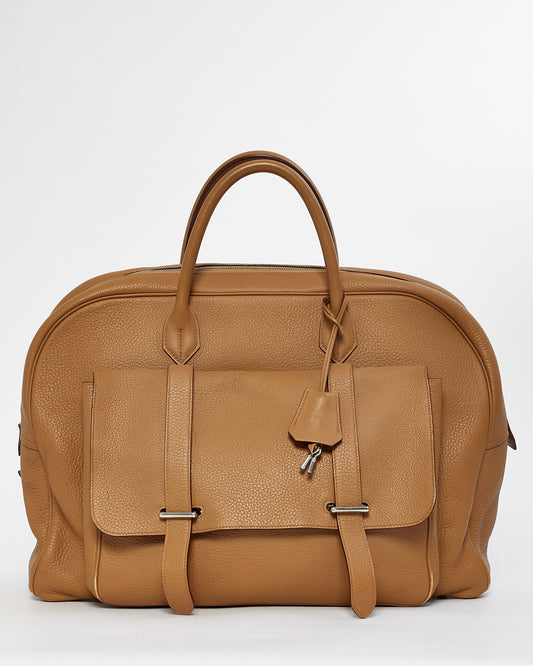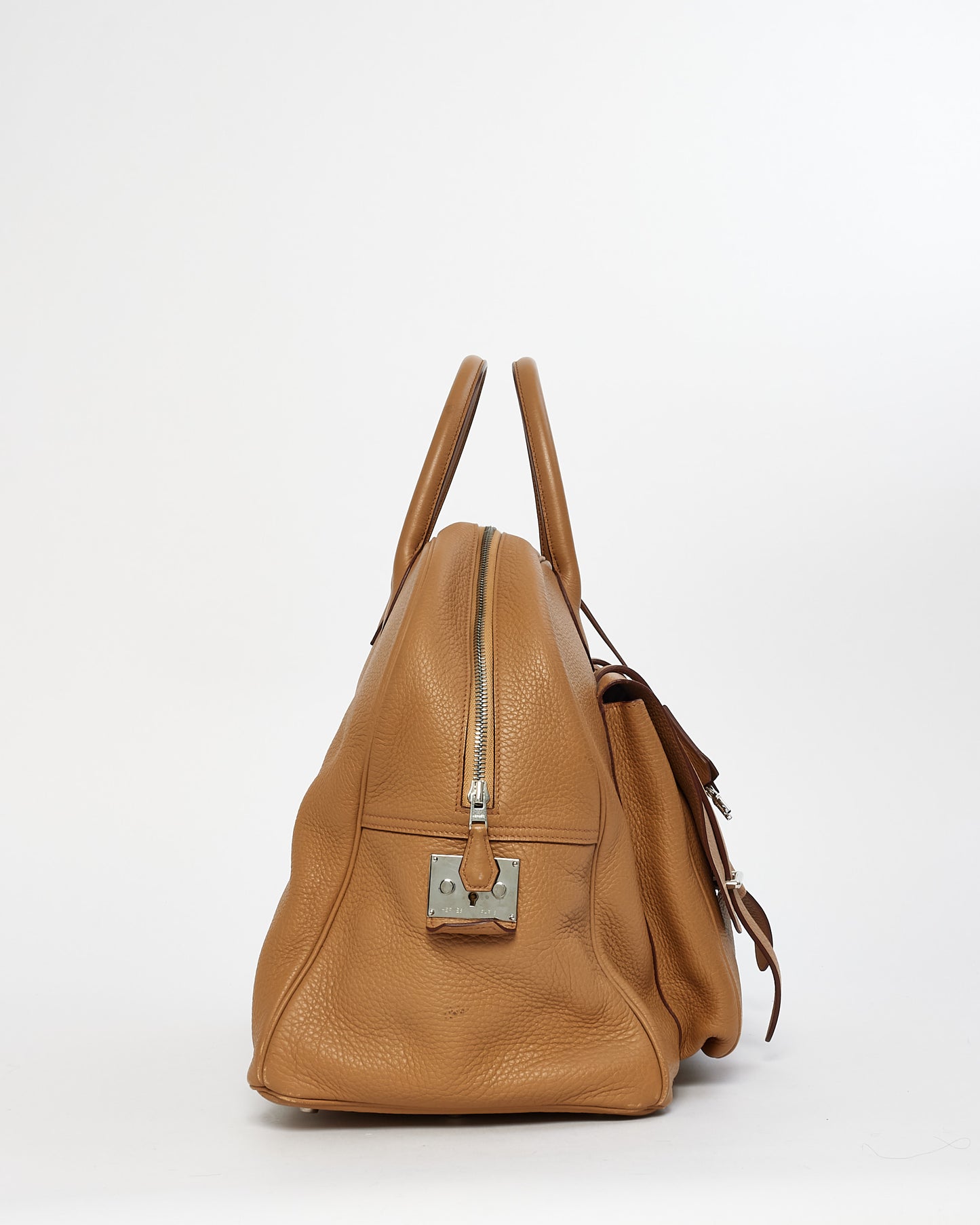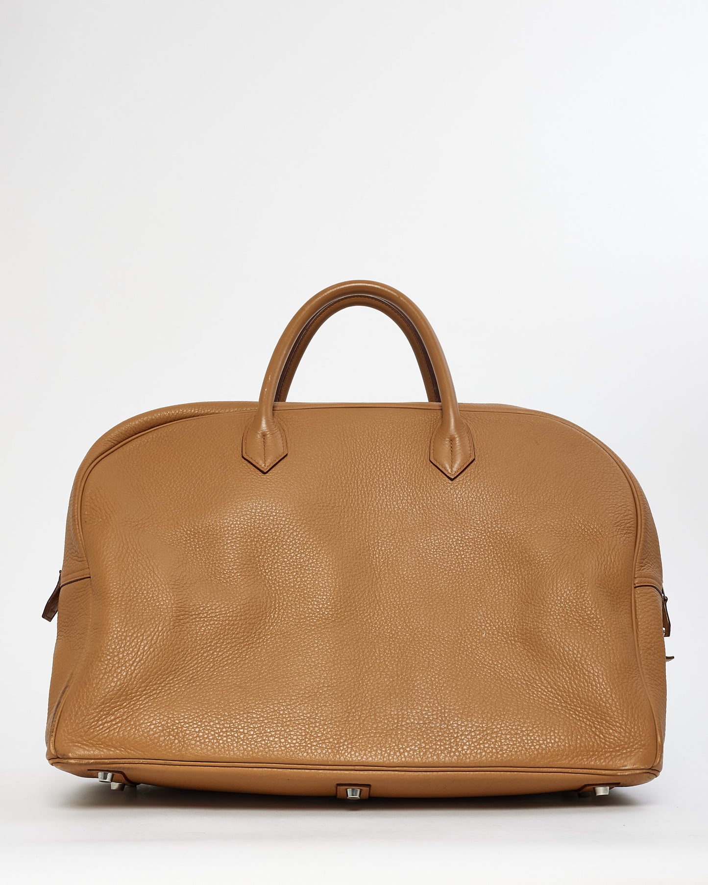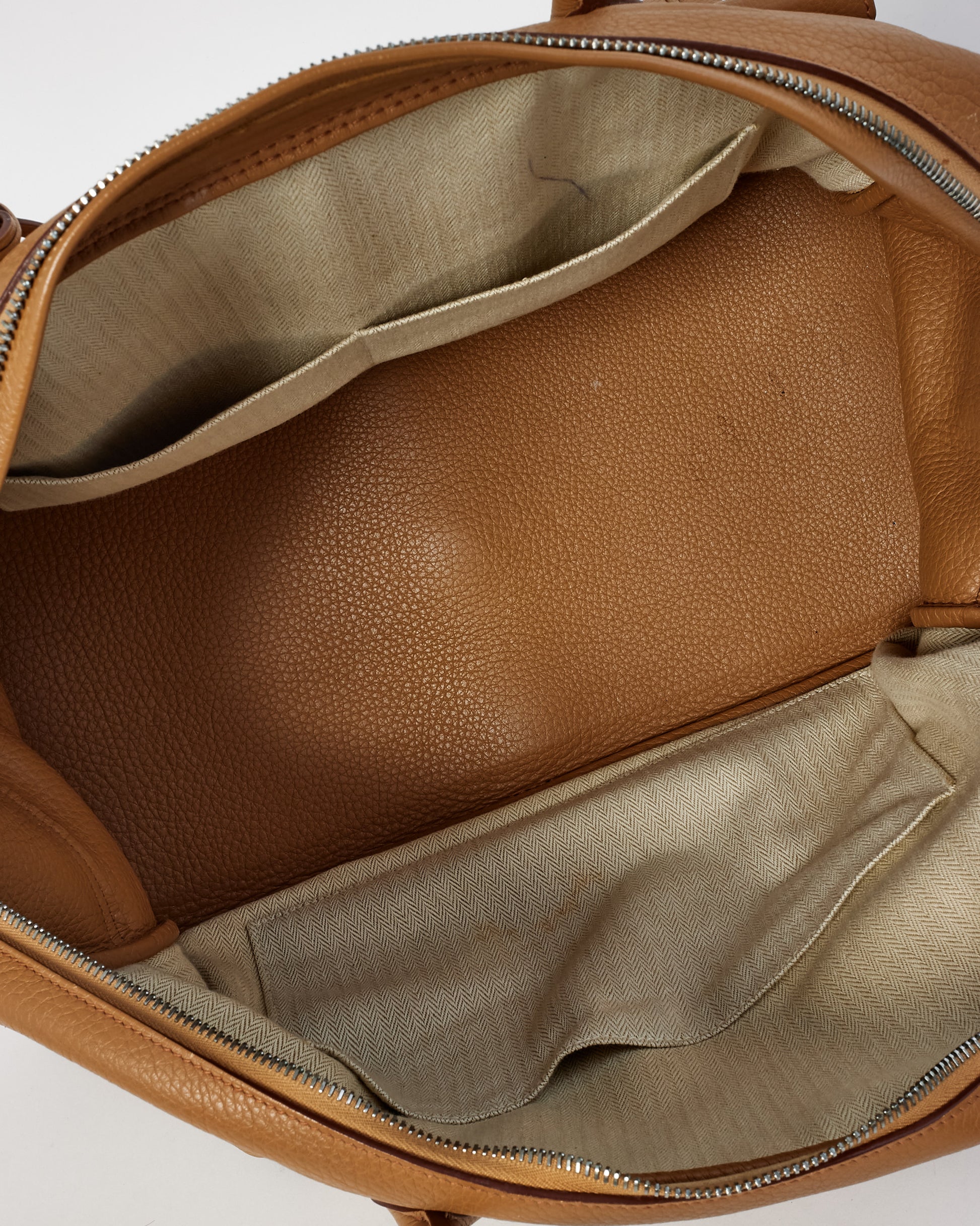 Explore Hermès's exquisite collection of handbags, featuring this certified pre-owned Tan Leather Steve Travel Bag. Embodying timeless elegance and modern sustainability, each piece, including favorites like this, is authenticated by Retyche. Discover sustainable luxury — shop our current treasures or find inspiration for your next coveted find.