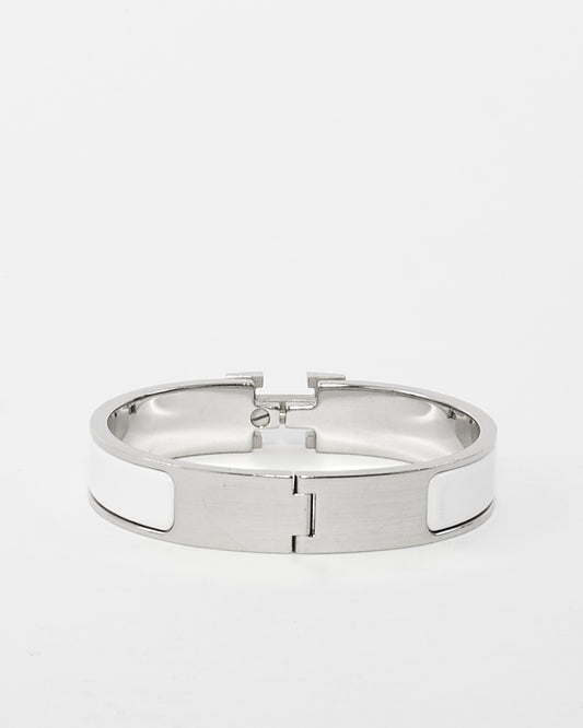 White & Silver Enamel Clic Clac Bracelet - PM