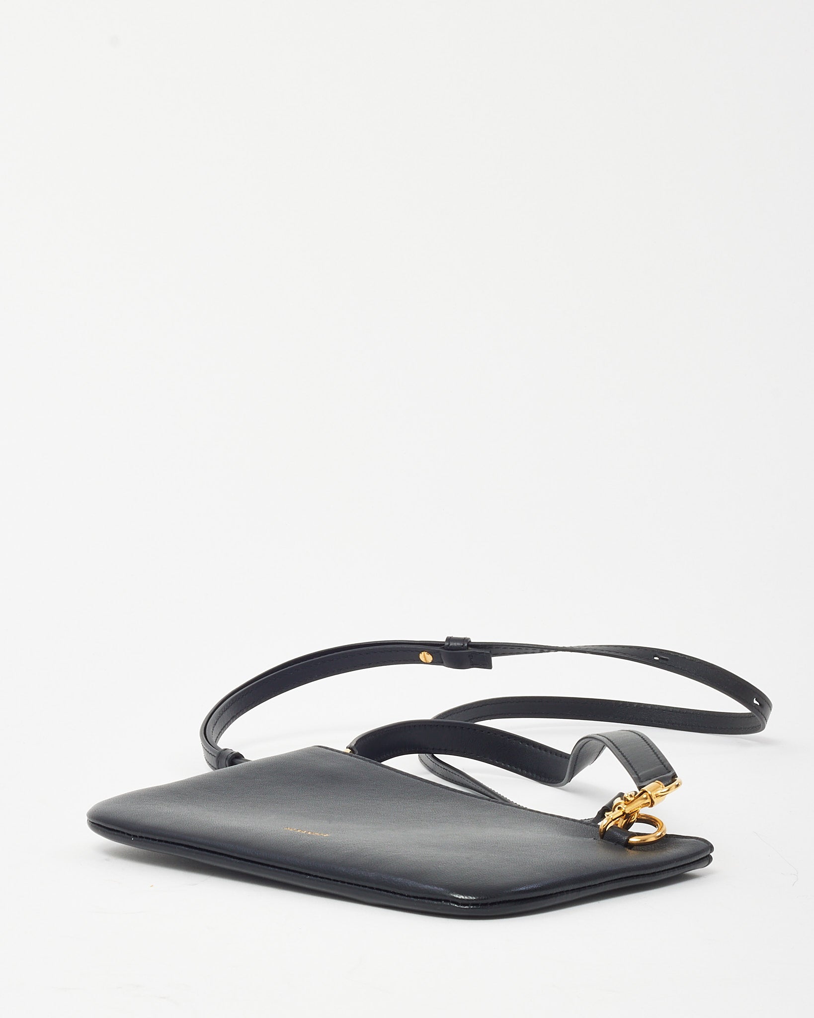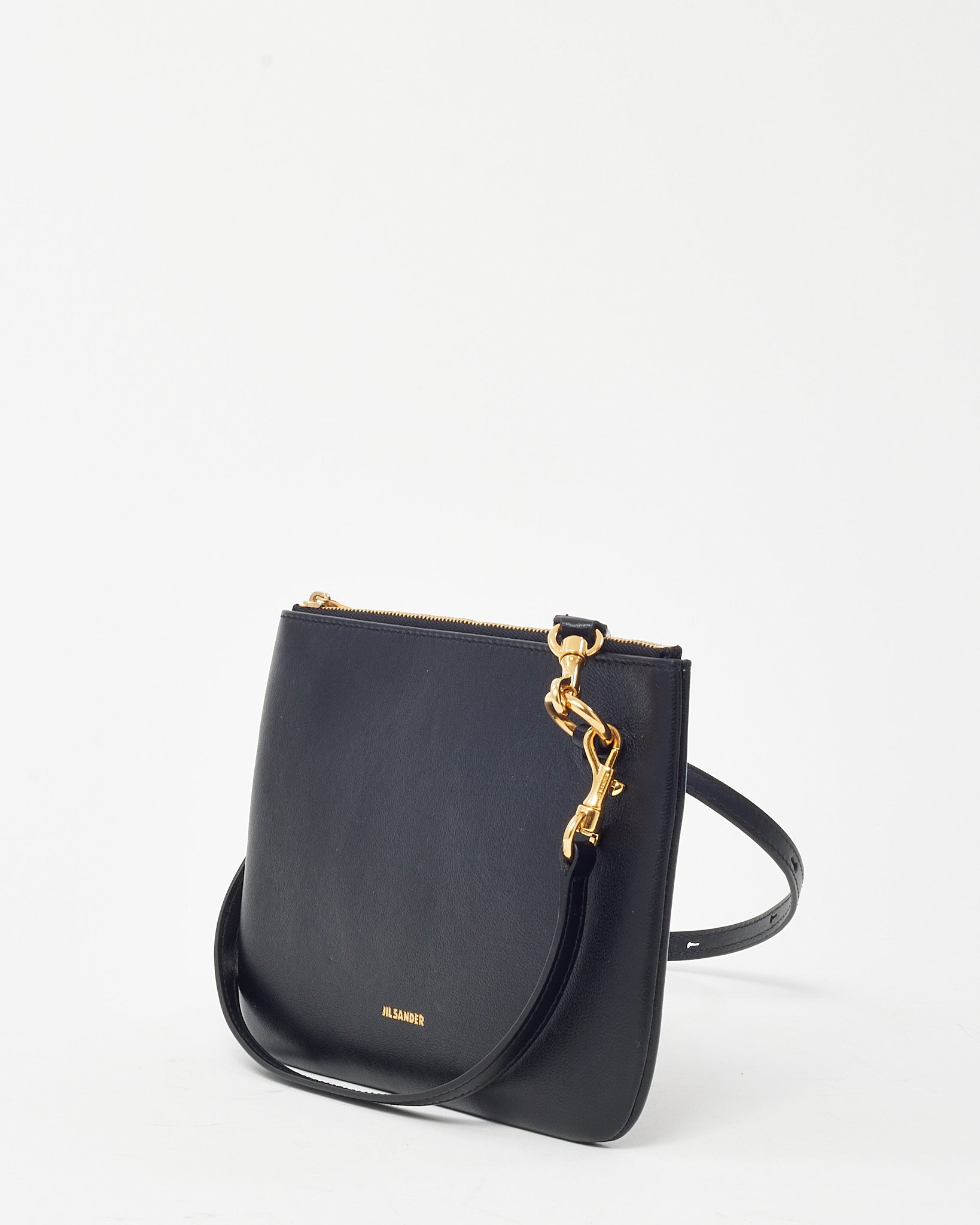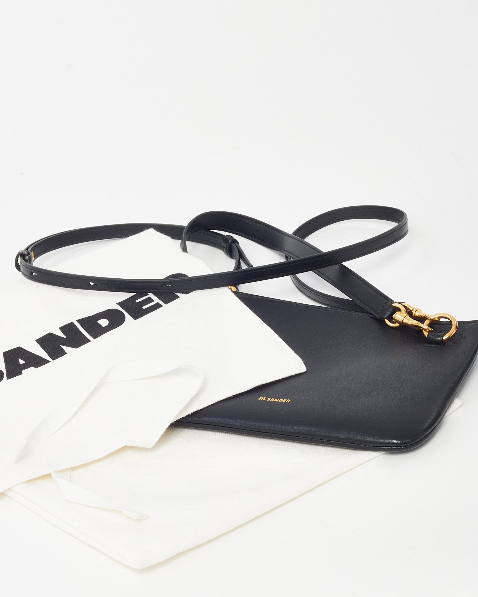 Minimalist sophistication meets modern function in this pre-loved authentic Jil Sander Small Crossbody Bag. Crafted from sleek black leather, the compact silhouette is elevated with a subtle white logo print, showcasing the brand’s refined aesthetic. Designed for streamlined styling, it features a slim profile with an adjustable strap for crossbody or shoulder wear. Perfect for carrying your essentials with ease, this understated accessory adds an effortless edge to both day and night looks.