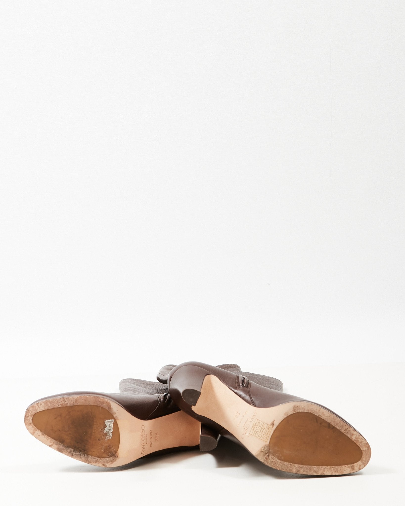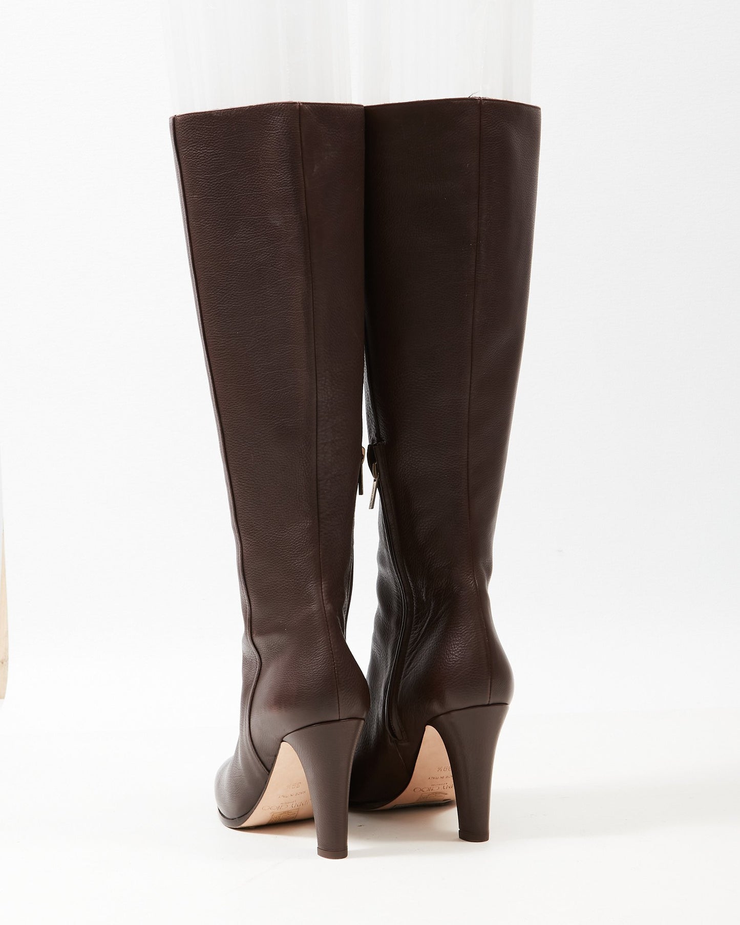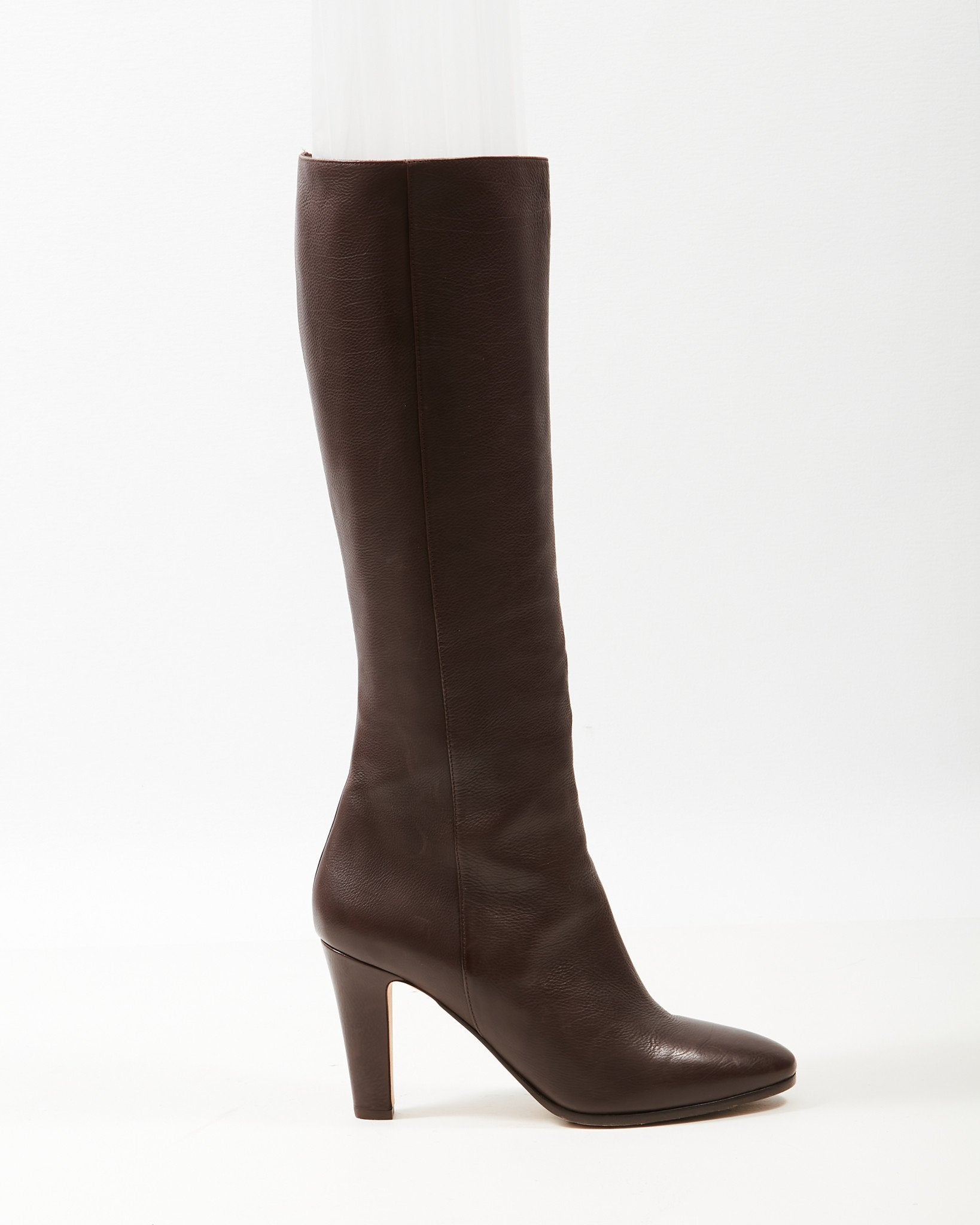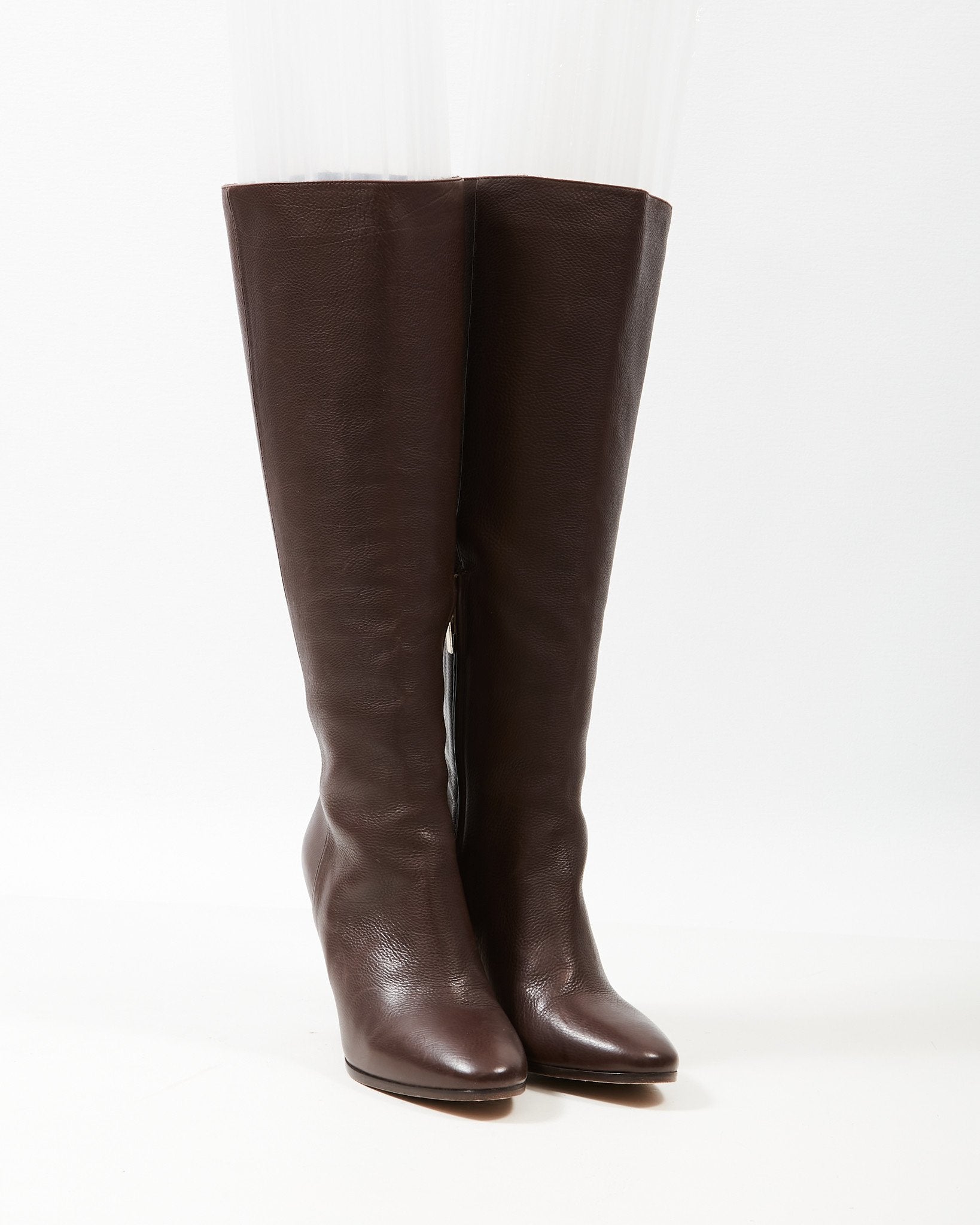 Brown Leather Knee-High Heeled Boots - 39.5