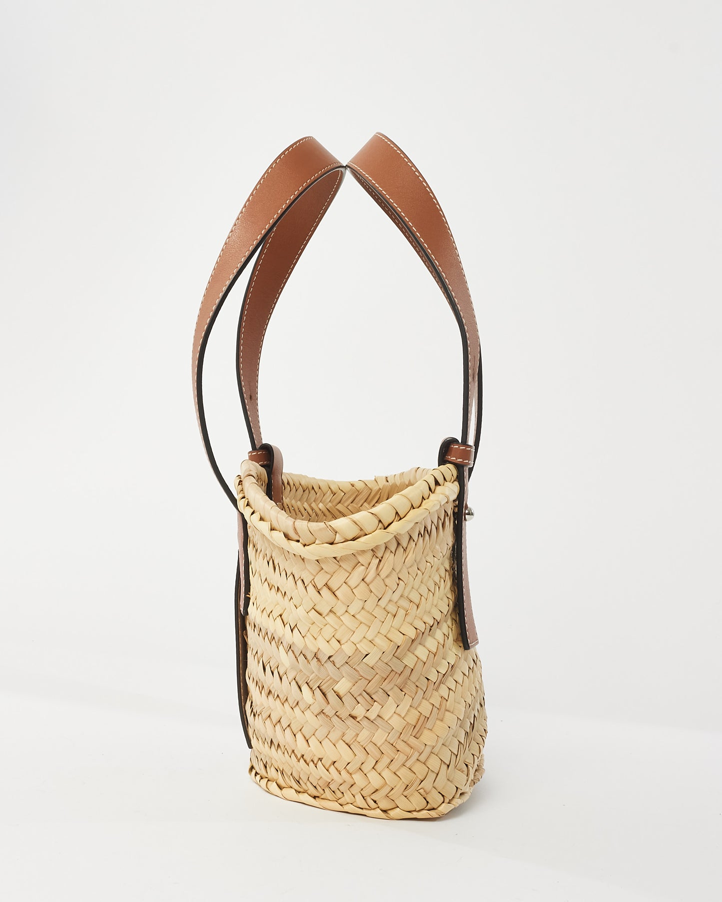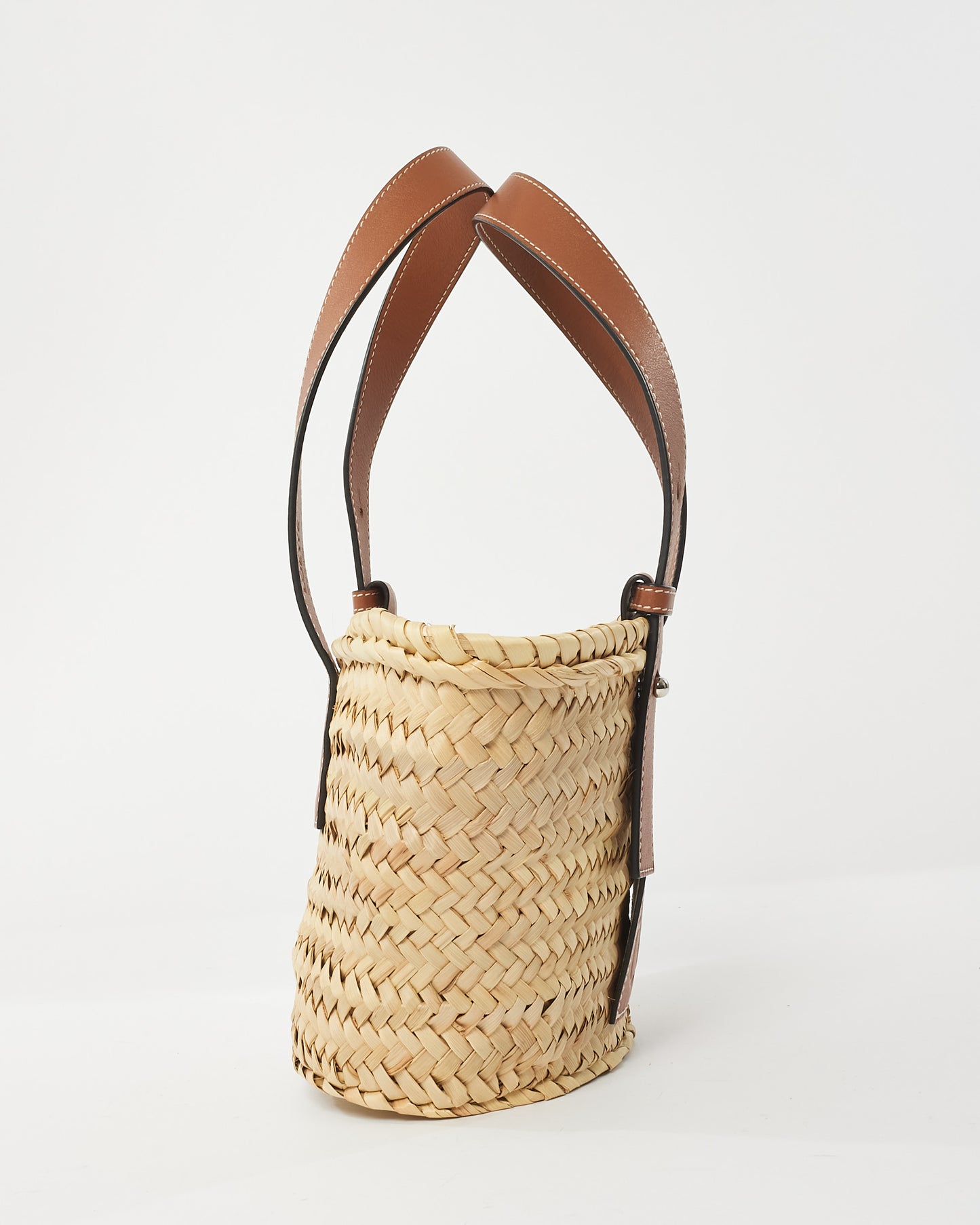 Tan Calfskin Palm Leaf Small Basket Bag