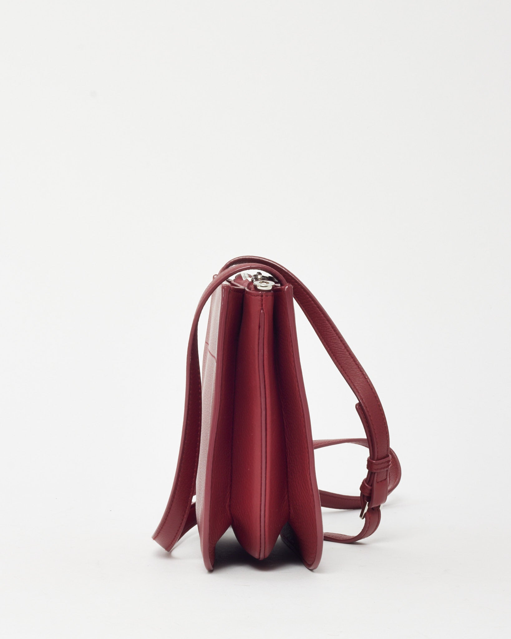 Elegant and understated, this pre-loved authentic Loro Piana Red Calfskin Leather My Way P Crossbody Bag embodies timeless Italian craftsmanship. Crafted from smooth calfskin leather in a rich red hue, this compact silhouette features a structured design with a sleek flap closure and adjustable shoulder strap for versatile wear. The minimalist detailing and refined hardware reflect Loro Piana’s signature sophistication, making it the perfect accessory for polished everyday or evening looks.