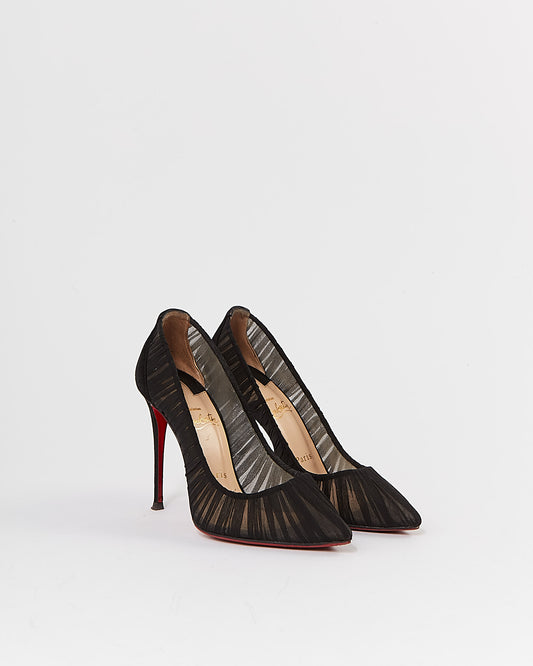 Louboutin Black Follie Draperia Chiffon Red Sole Pump - 37