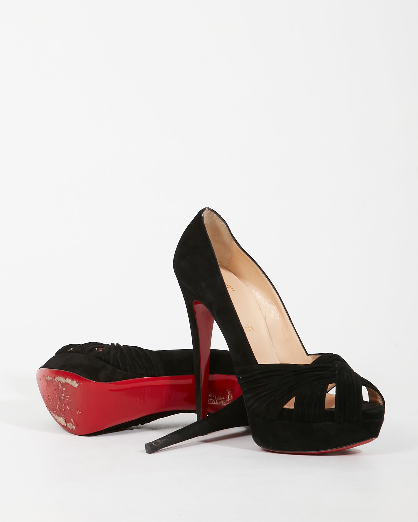 Louboutin Black Suede Aborina 150 Platform Pumps - 40