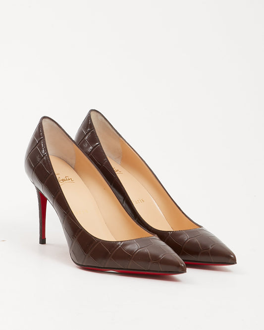 Louboutin Brown Embossed Croc Leather Kate 85 Heel - 36