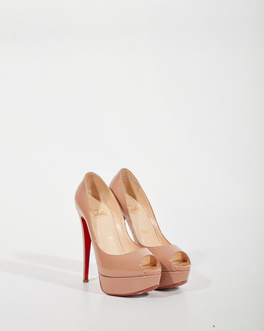 Louboutin Nude Patent Peep Toe Platform Pumps - 36