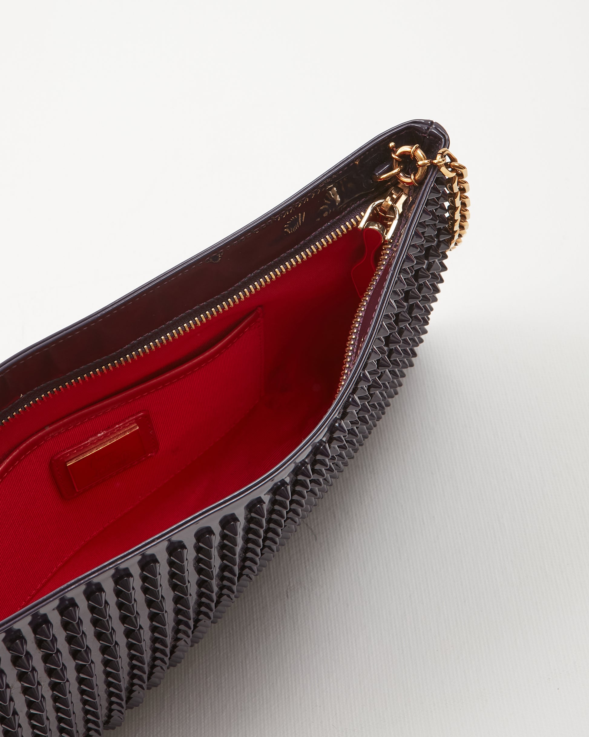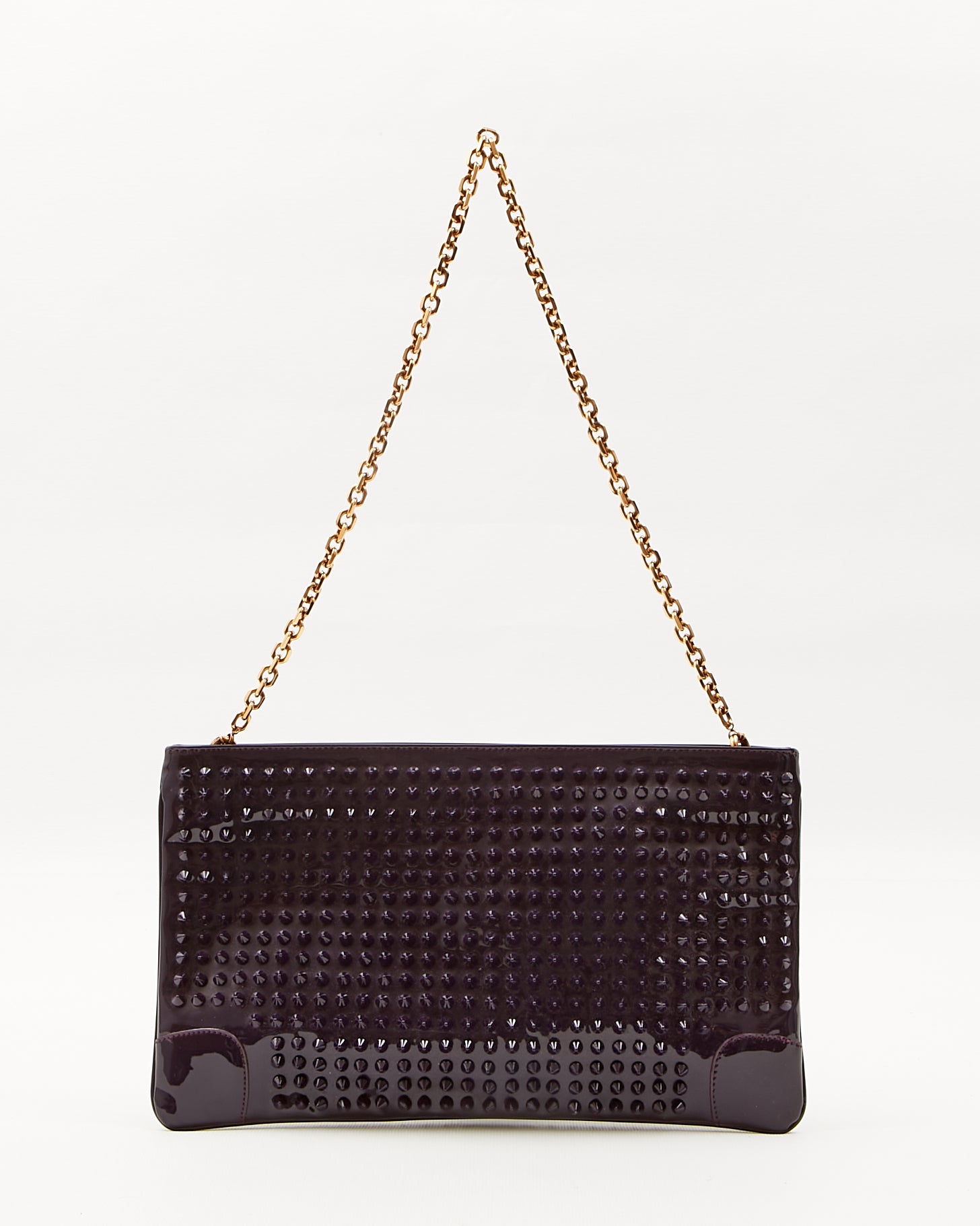Louboutin Purple Patent Leather Spike Chain Shoulder Clutch