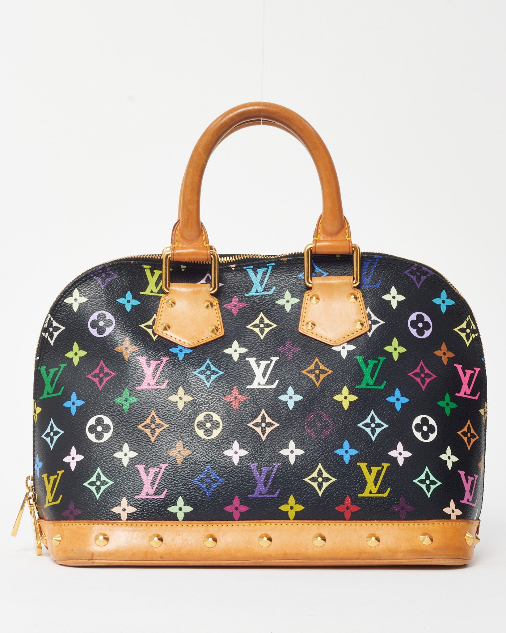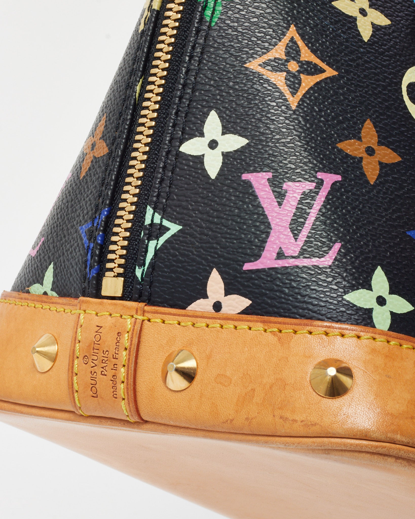 Vibrant and iconic, this pre-loved authentic Louis Vuitton Black and Multi Monogram Murakami Coated Canvas Alma PM Bag captures a playful take on the classic Alma silhouette. Designed in collaboration with artist Takashi Murakami, it features colorful monogram motifs on black coated canvas with natural Vachetta leather trim and gold-tone hardware. The structured dome shape, double zip closure, and spacious interior make it both practical and chic. A collectible Louis Vuitton piece that perfectly blends art, luxury, and timeless design.