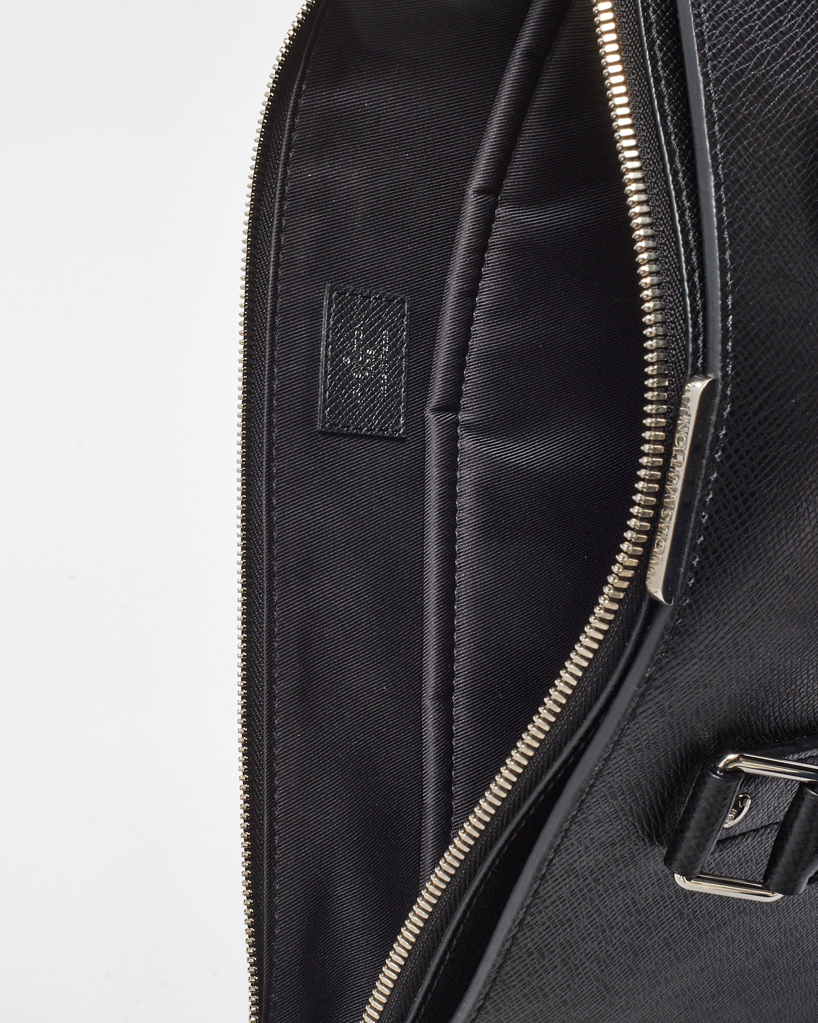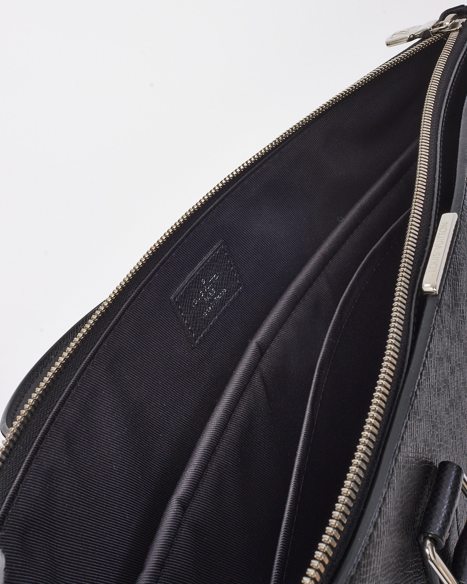 Sleek and professional, this pre-loved authentic Louis Vuitton Anton Soft Briefcase is crafted from durable black Taiga leather with a subtly textured finish. Designed for versatility, it features dual top handles and a detachable, adjustable strap for both hand-held and crossbody wear. The structured silhouette includes a secure top zip closure and a well-organized interior with multiple compartments for documents, tech, and daily essentials. Finished with silver-tone hardware and discreet LV branding, this briefcase is a refined choice for modern business style.
