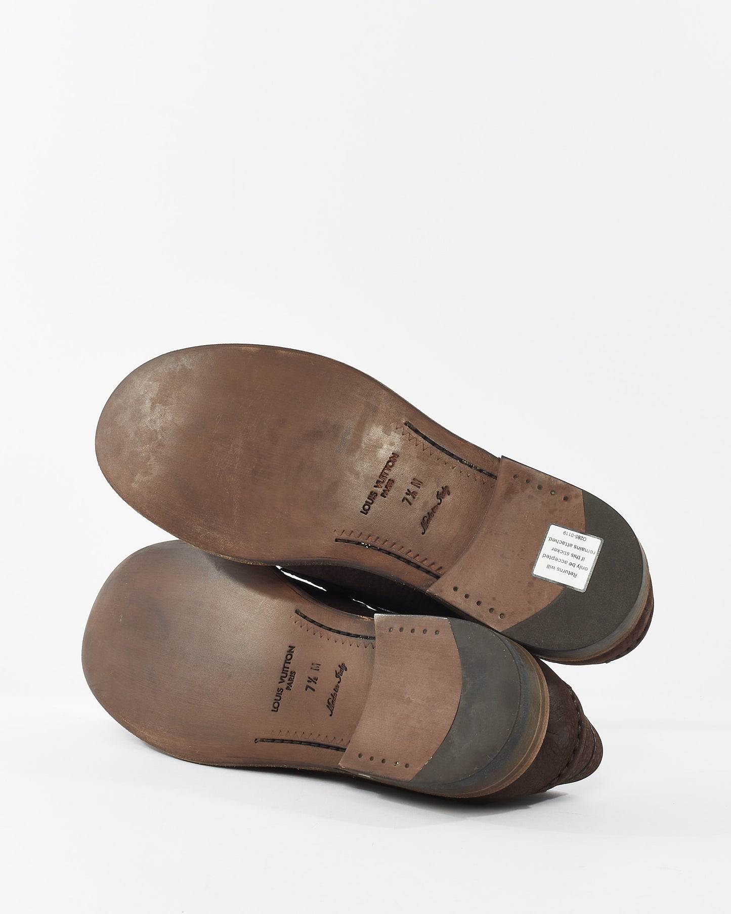 Explore Louis Vuitton's exquisite collection of shoes, featuring this certified pre-owned Brown Suede Loafers - 7.5MEN. Embodying timeless elegance and modern sustainability, each piece, including favorites like this, is authenticated by Retyche. Discover sustainable luxury — shop our current treasures or find inspiration for your next coveted find.